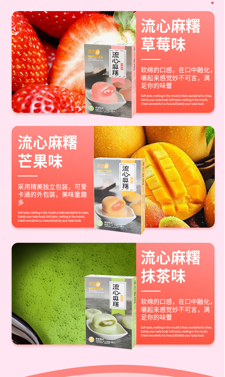 식품 영양소스 모찌 150g 폭발적인 찹쌀떡 스노우 메이니앙 스낵 찹쌀떡 전통 페이스트리 스낵