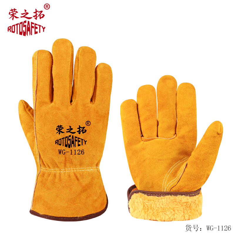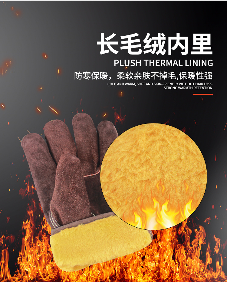 Cowhide 용접 장갑 겨울면 따뜻한 봉제 겨울 야외 작업 승마 용접기 용접 노동 보호