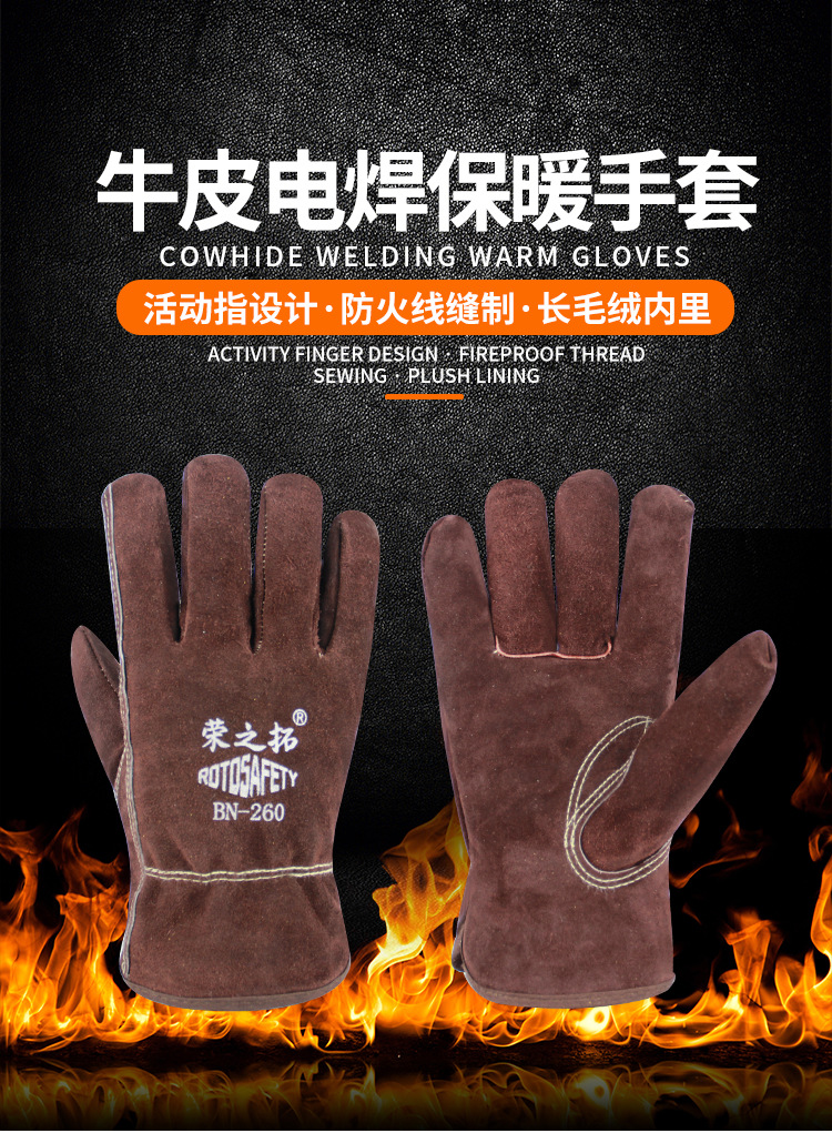 Cowhide 용접 장갑 겨울면 따뜻한 봉제 겨울 야외 작업 승마 용접기 용접 노동 보호스토어 가기