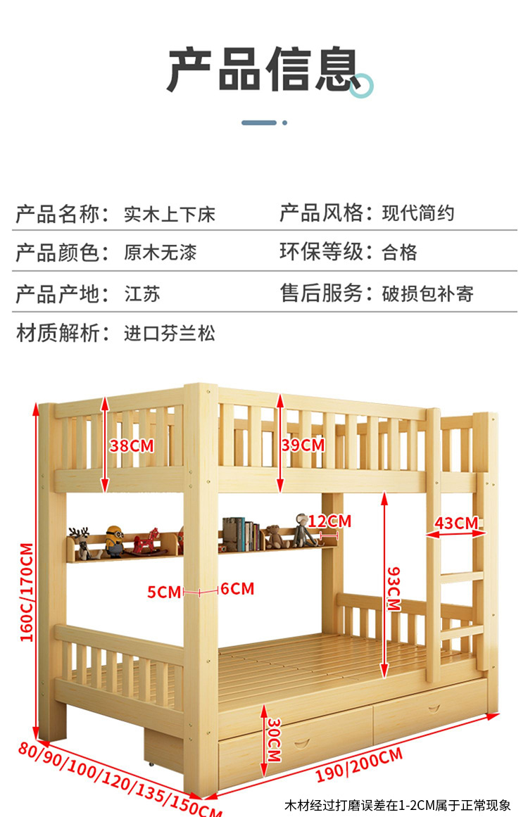 전체 단단한 나무 상부 및 하부 이층 더블 침대 GB 높고 낮은 어머니 침대 직원 기숙사 침대 2 층 어린이 성인 이층 침대