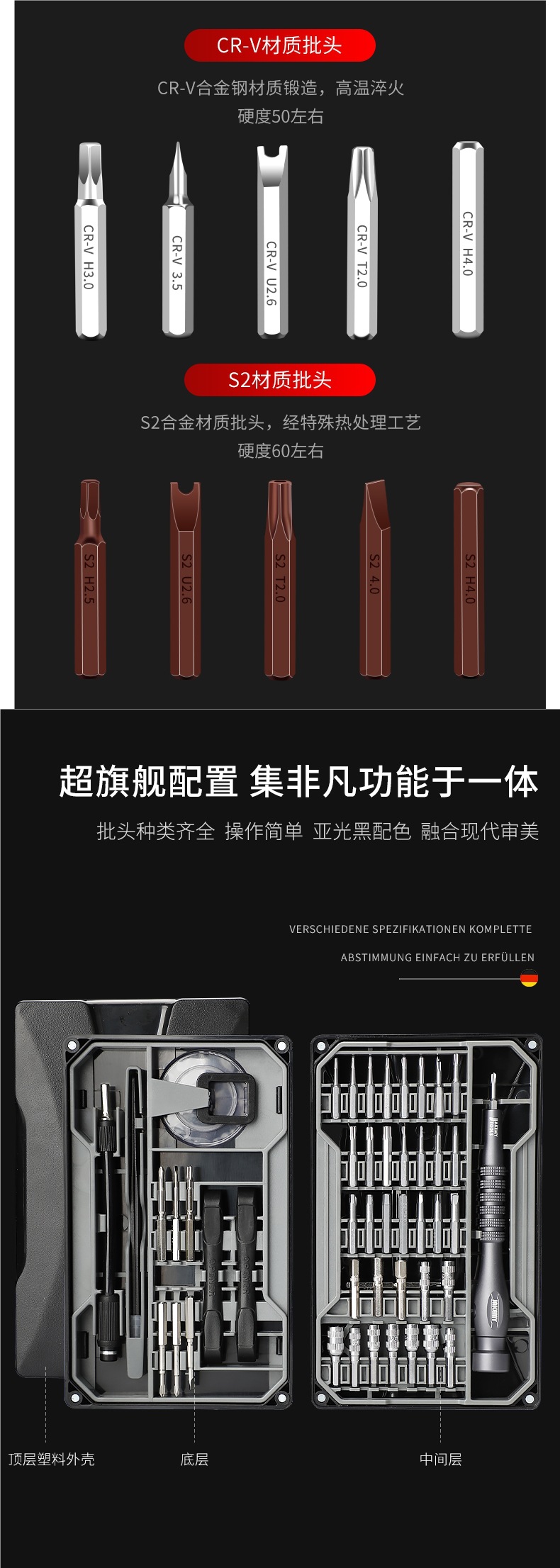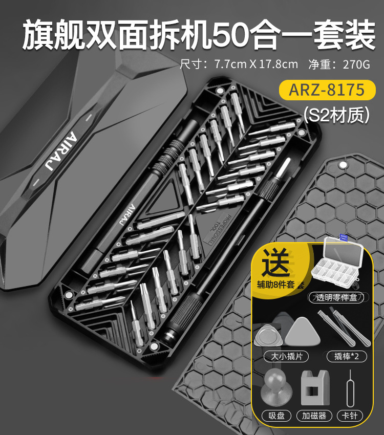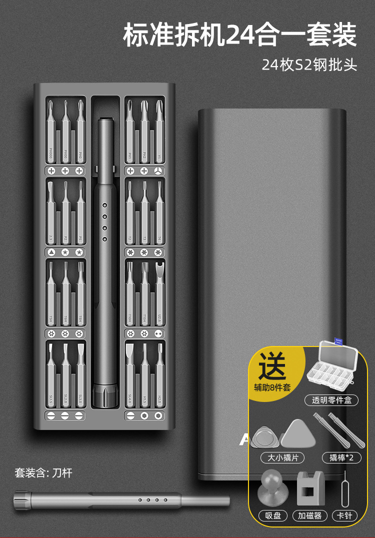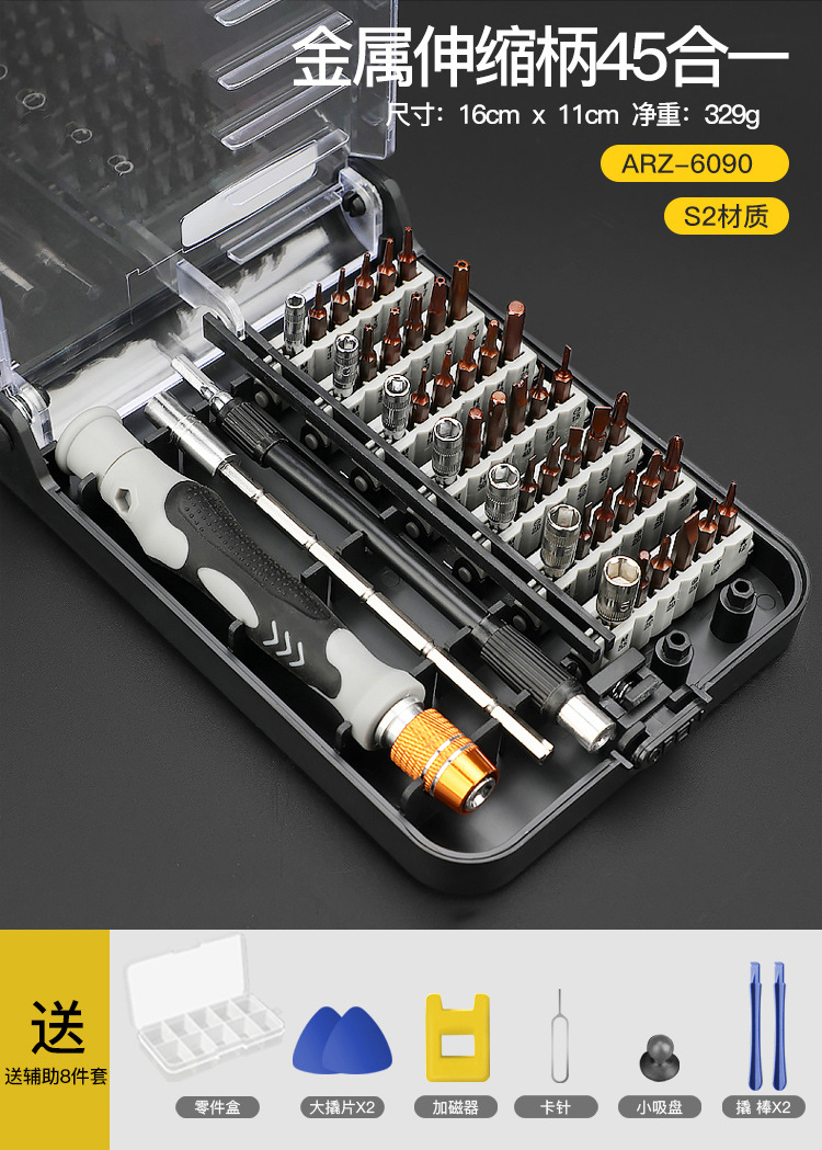 • 정밀 46-in-1(알루미늄 배럴)에는 분해된 기계 세트 8개가 포함되어 있습니다.