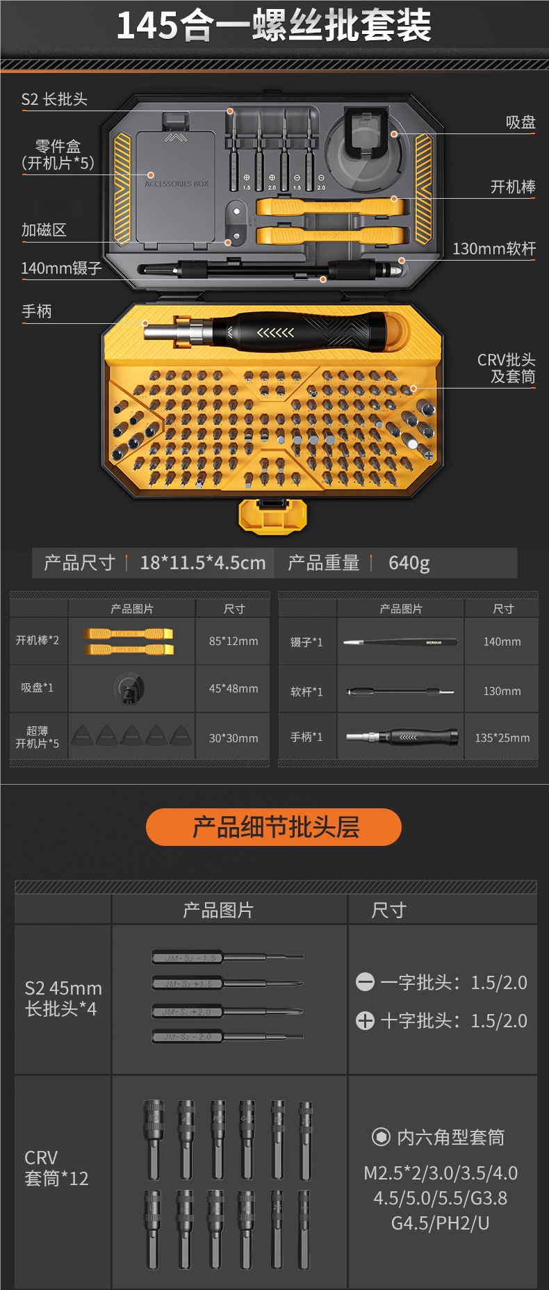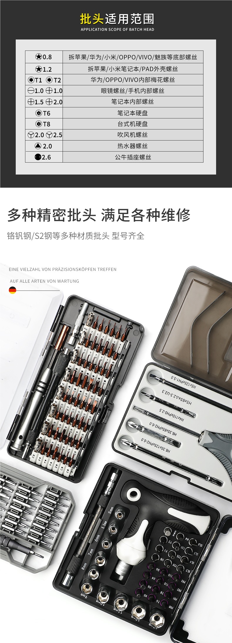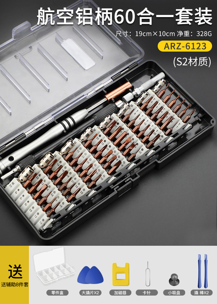 • 정밀 46-in-1(알루미늄 배럴)에는 분해된 기계 세트 8개가 포함되어 있습니다.