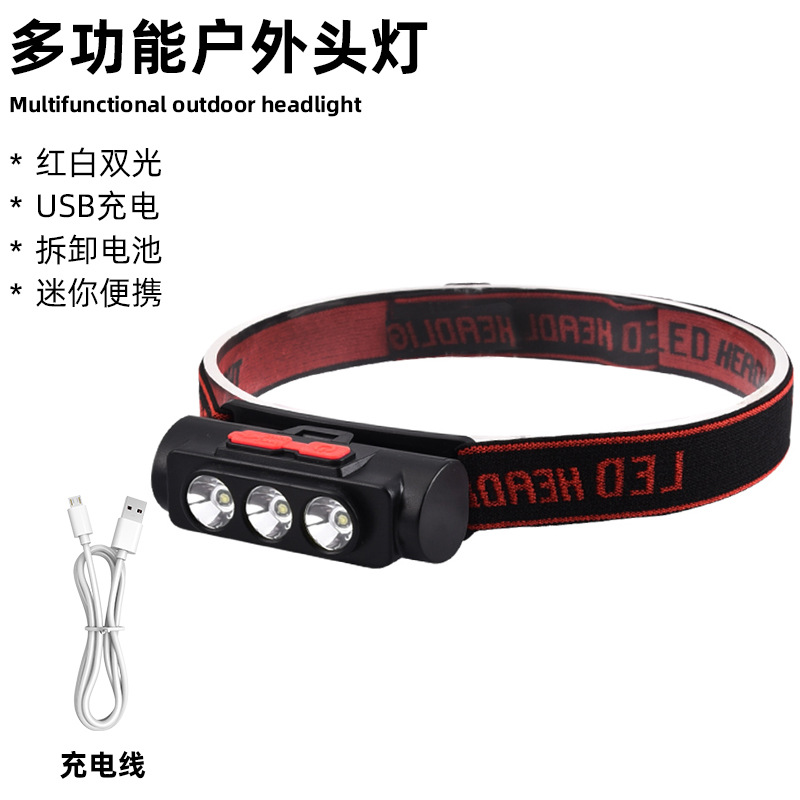 국경 간 새로운 헤드 장착 야간 낚시 헤드 라이트 야외 강한 빛 장거리 USB 충전식 LED 탈착식 듀얼 라이트 헤드 라이트