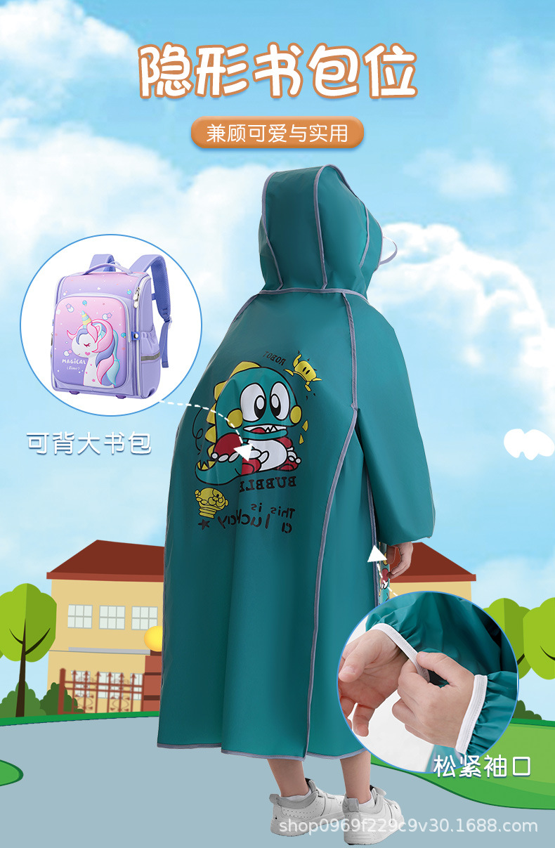 어린이 비옷 여학생 2024 초등학생을위한 학교 가방을 가진 새로운 소년 아이들의 귀여운 폭풍우 방지 긴 스타일스토어 가기