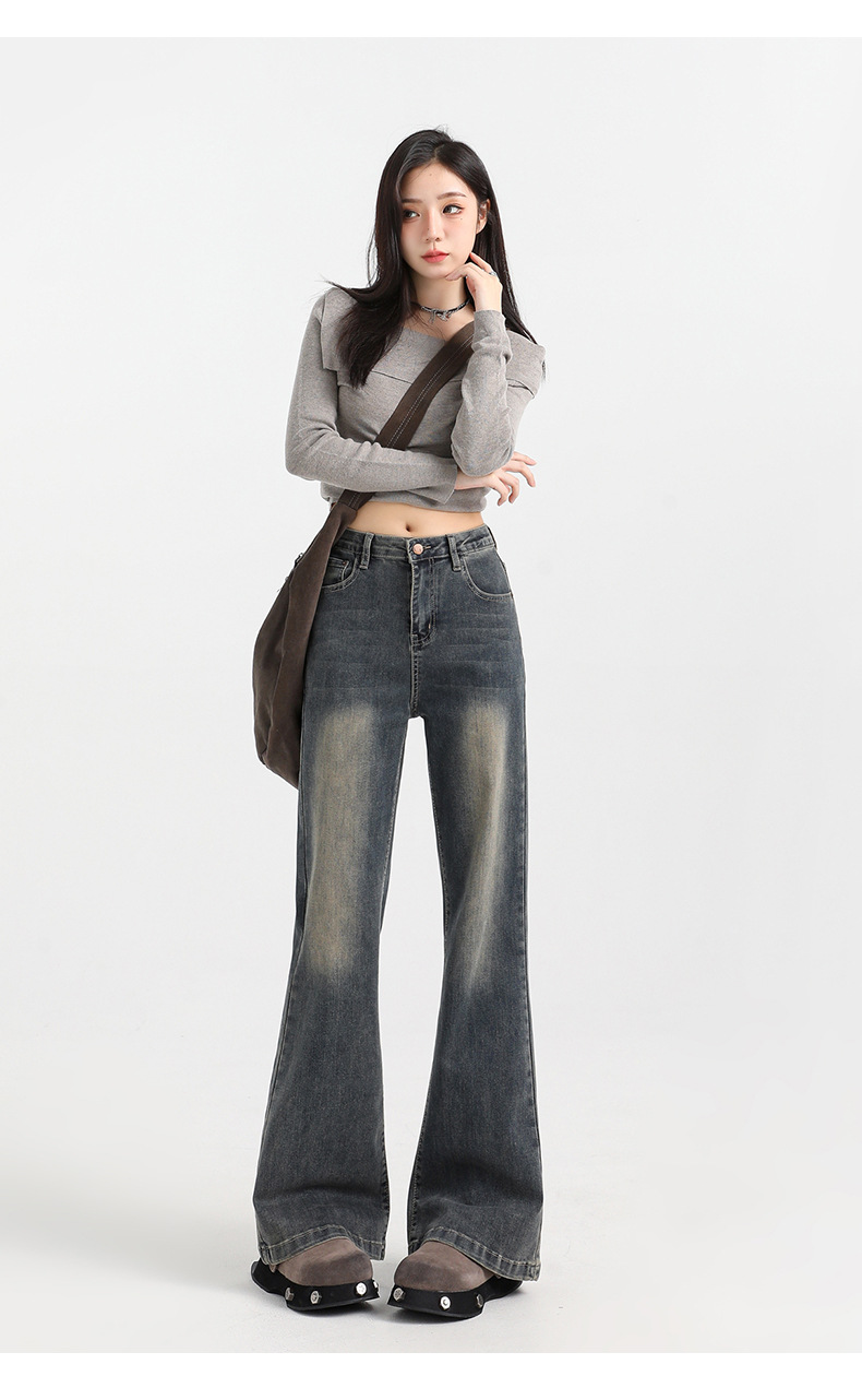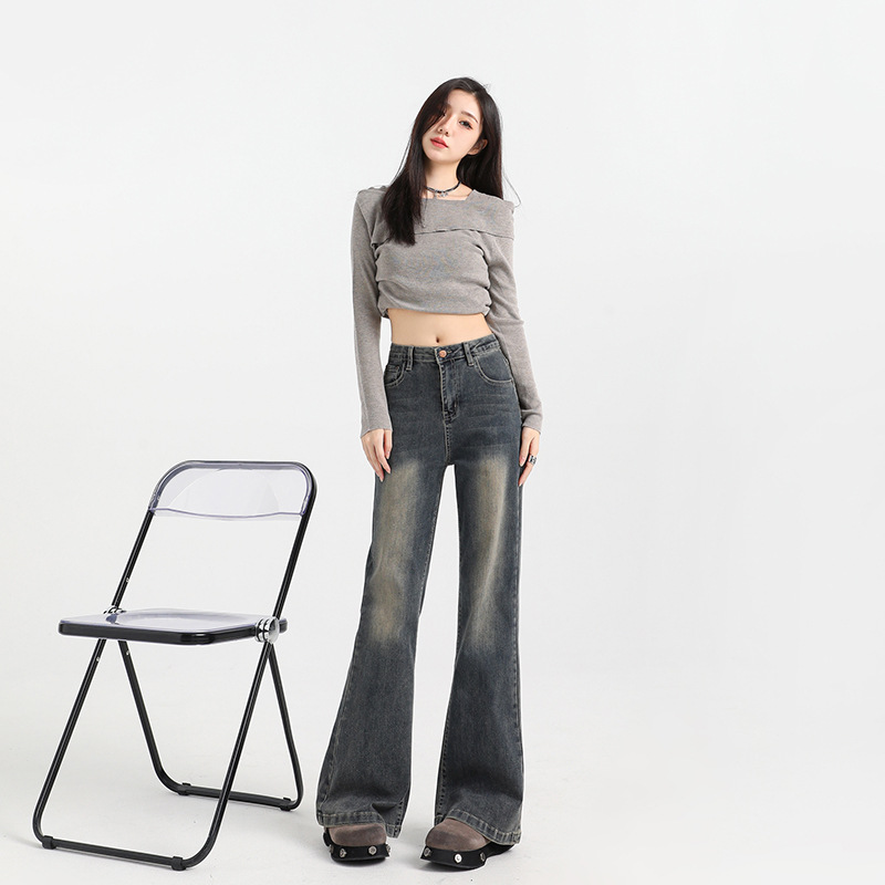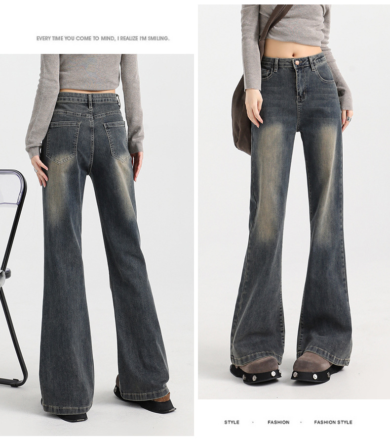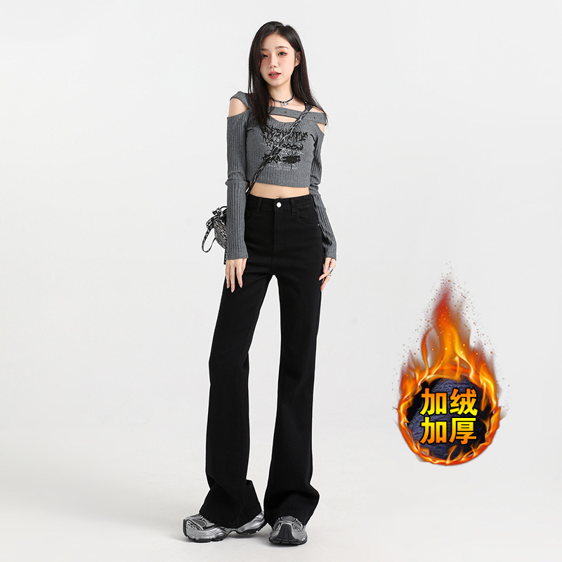 기모 마이크로 혼 청바지 여성의 2024 가을과 겨울 새로운 빈티지 경적 바지 슬림 조커 말굽 바닥 바지스토어 가기