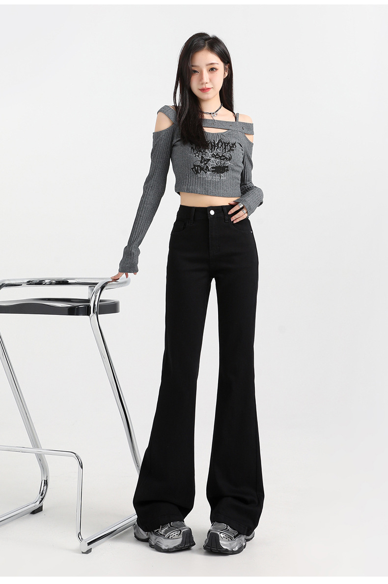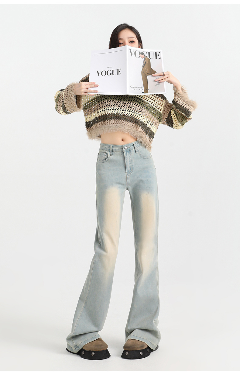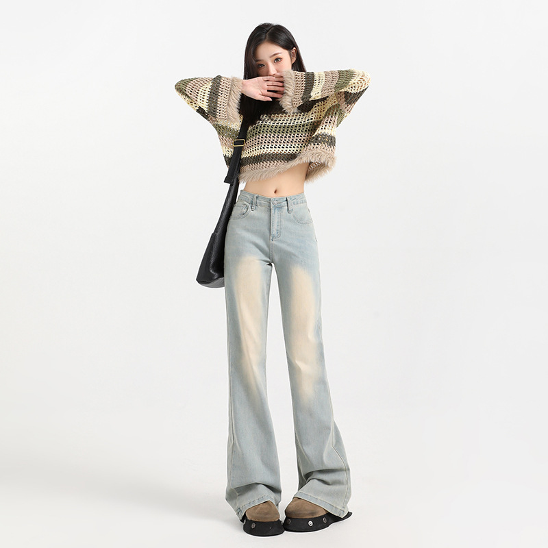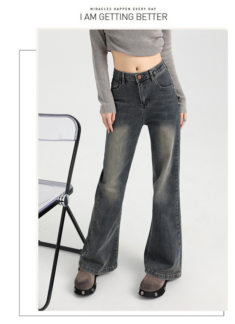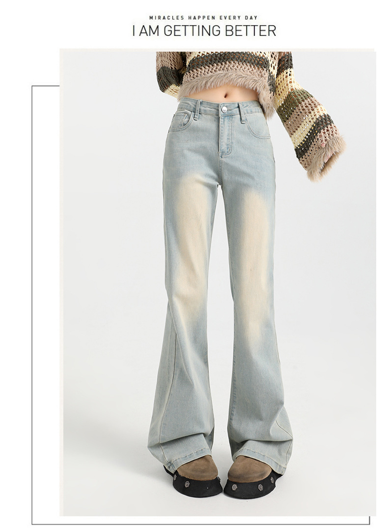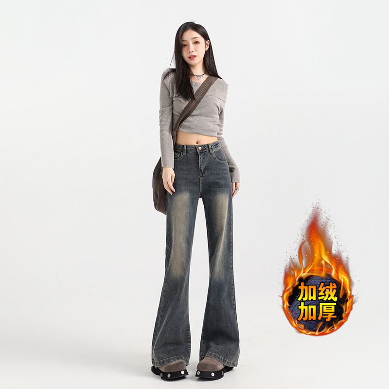 기모 마이크로 혼 청바지 여성의 2024 가을과 겨울 새로운 빈티지 경적 바지 슬림 조커 말굽 바닥 바지