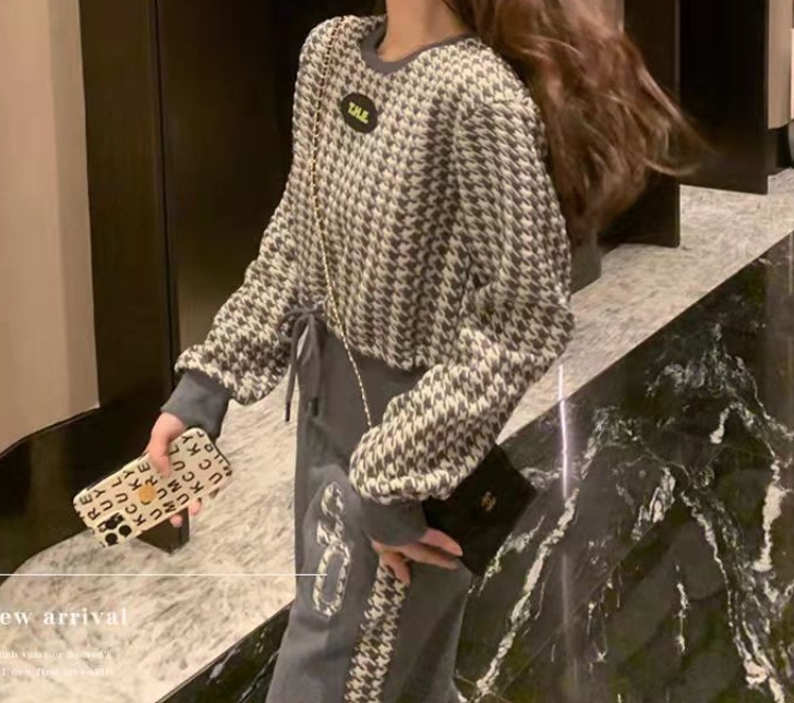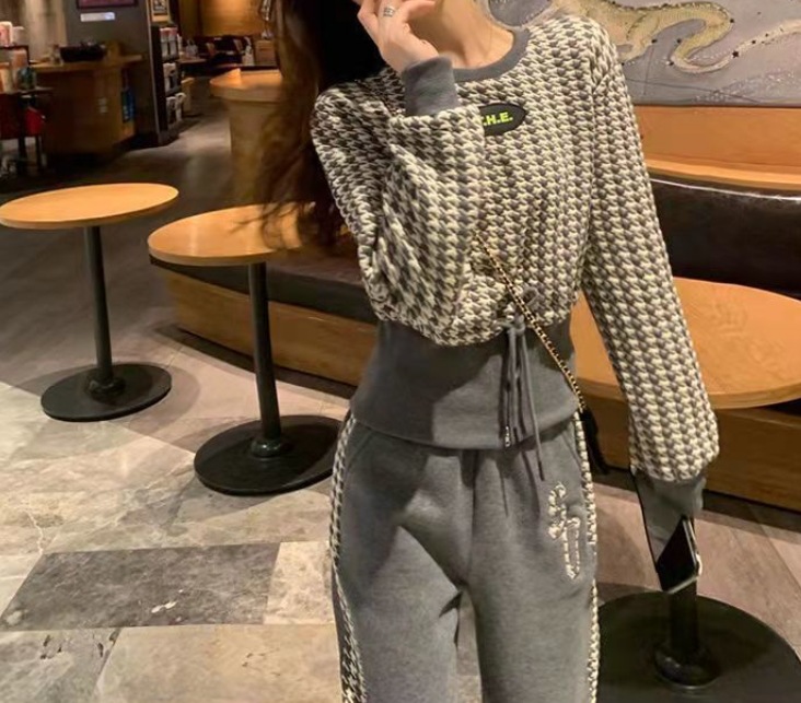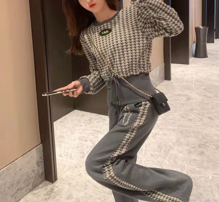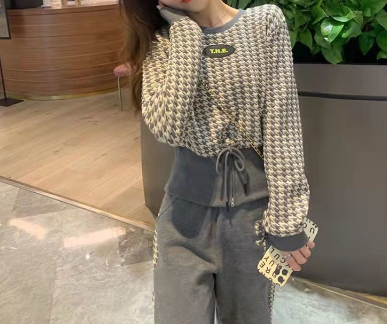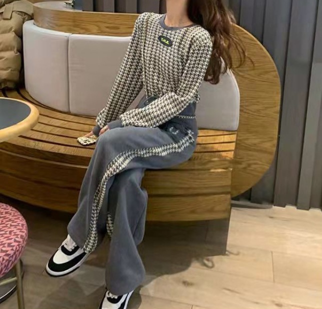 샤오 샹 스타일 투피스 패션 캐주얼 웨스턴 스타일 나이 감소 와이드 레그 팬츠 스포츠 세트 여성 의류 패션 2024 가을스토어 가기