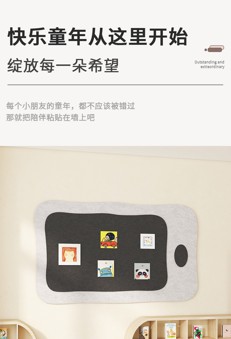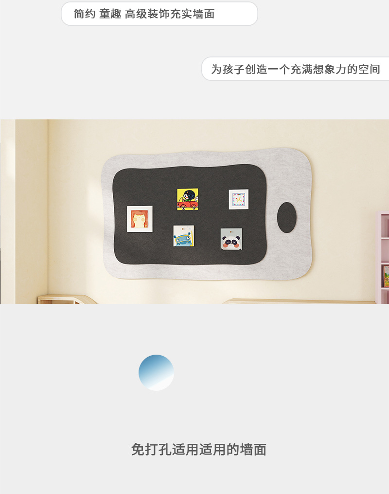 간단한 회색 스타일 펠트 사진 벽 3D 입체 펀치 무료 양모 펠트 벽 스티커 어린이 방 연구 장식 교수형 그림스토어 가기