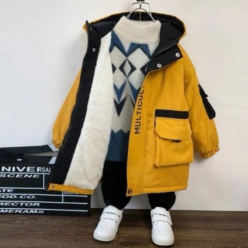 소년 코트 어린 시절 2024 새로운 소년 및 아기 면화 코트 두꺼운 최고 어린이 파이크 겨울복 아동복 기모스토어 가기