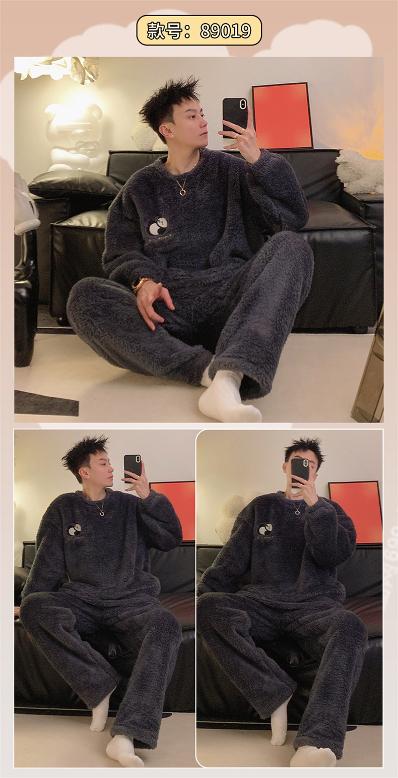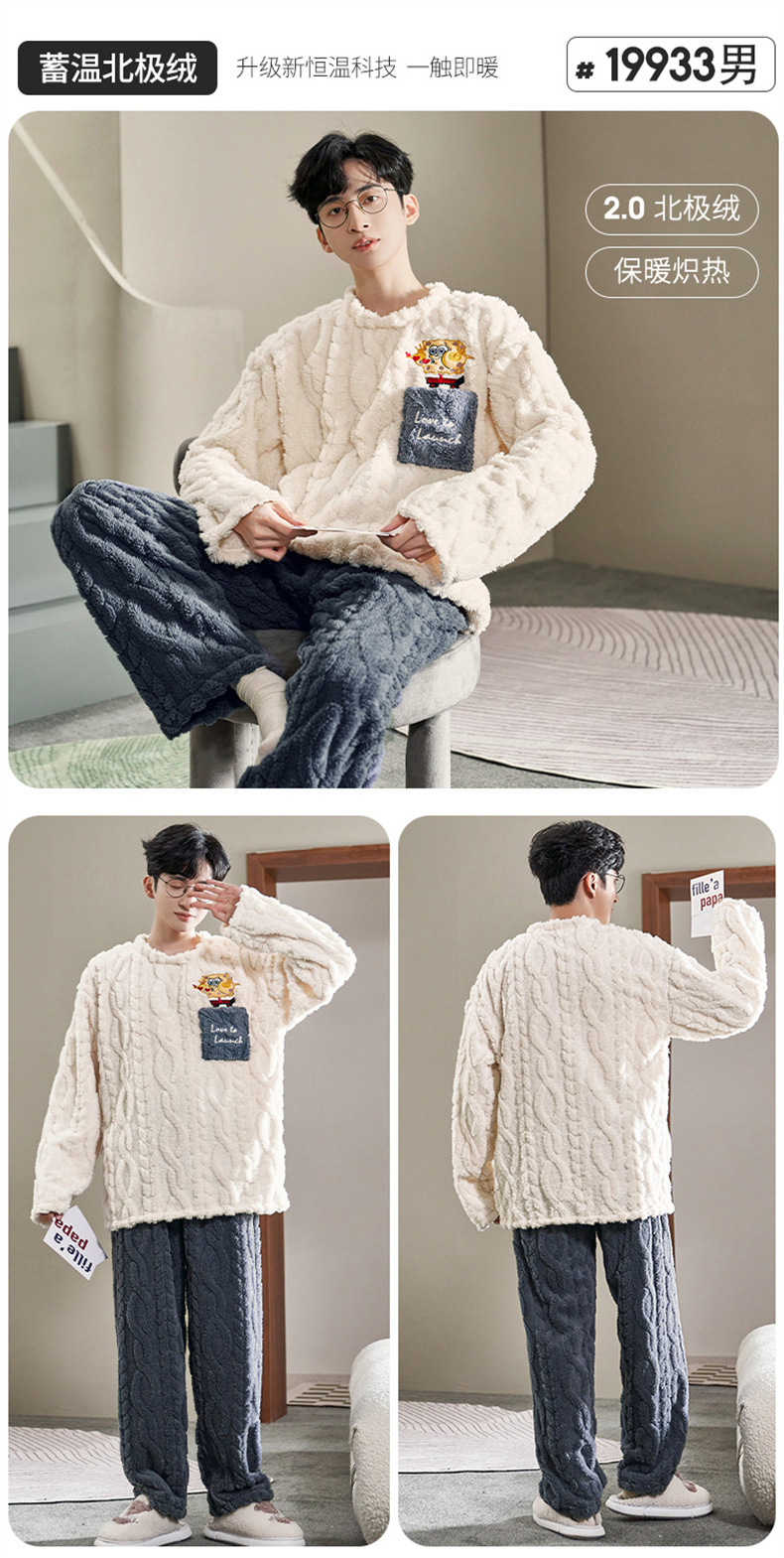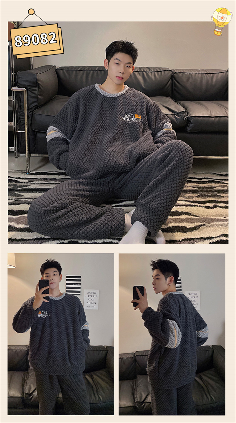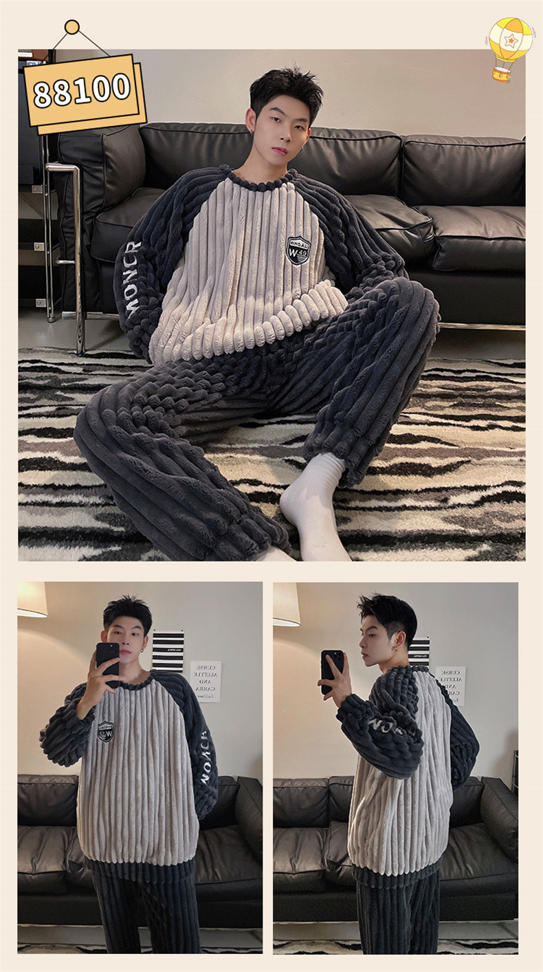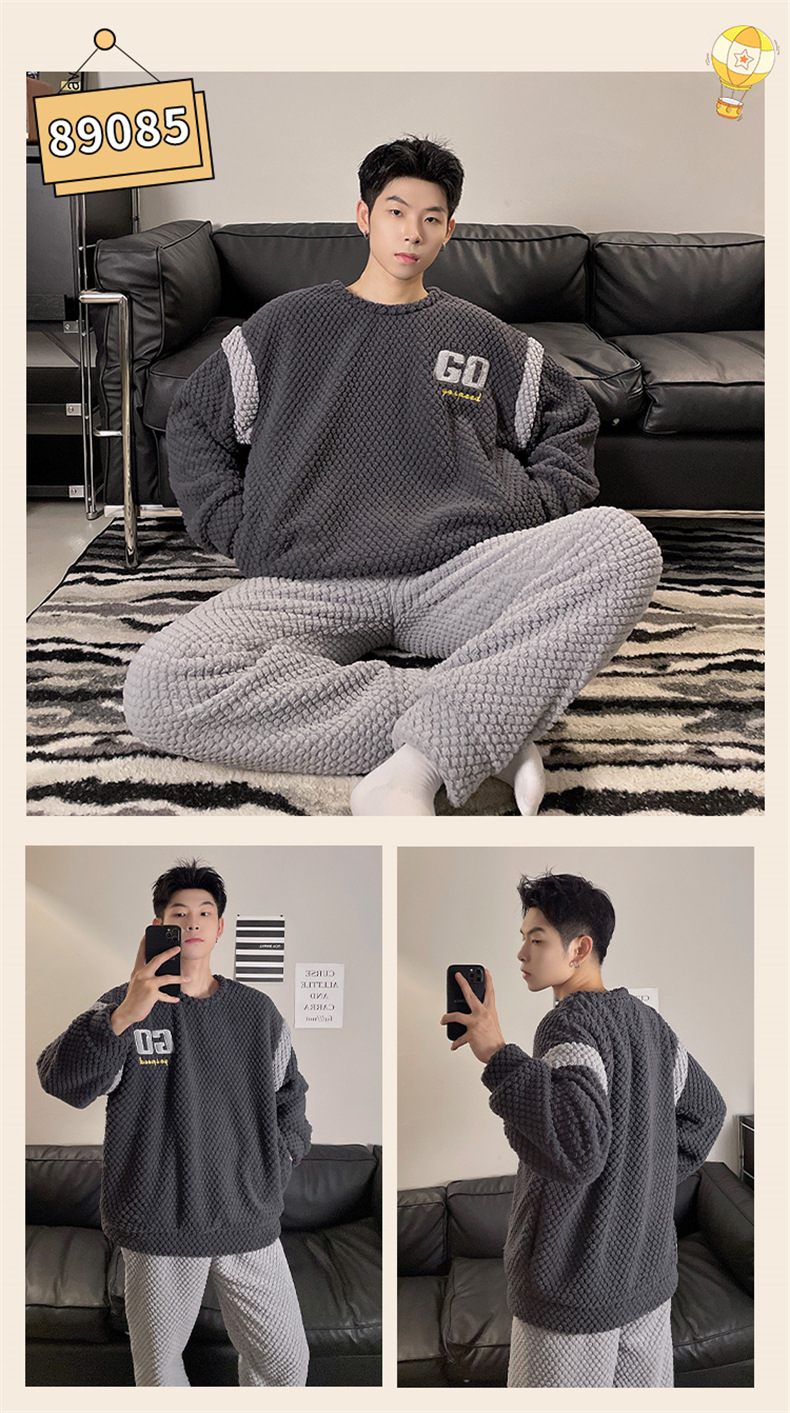 2024 년 겨울 새 플란넬 남성 아웃웨어 두꺼운 파자마 긴 소매 바지 플러시 홈 의류 세트스토어 가기