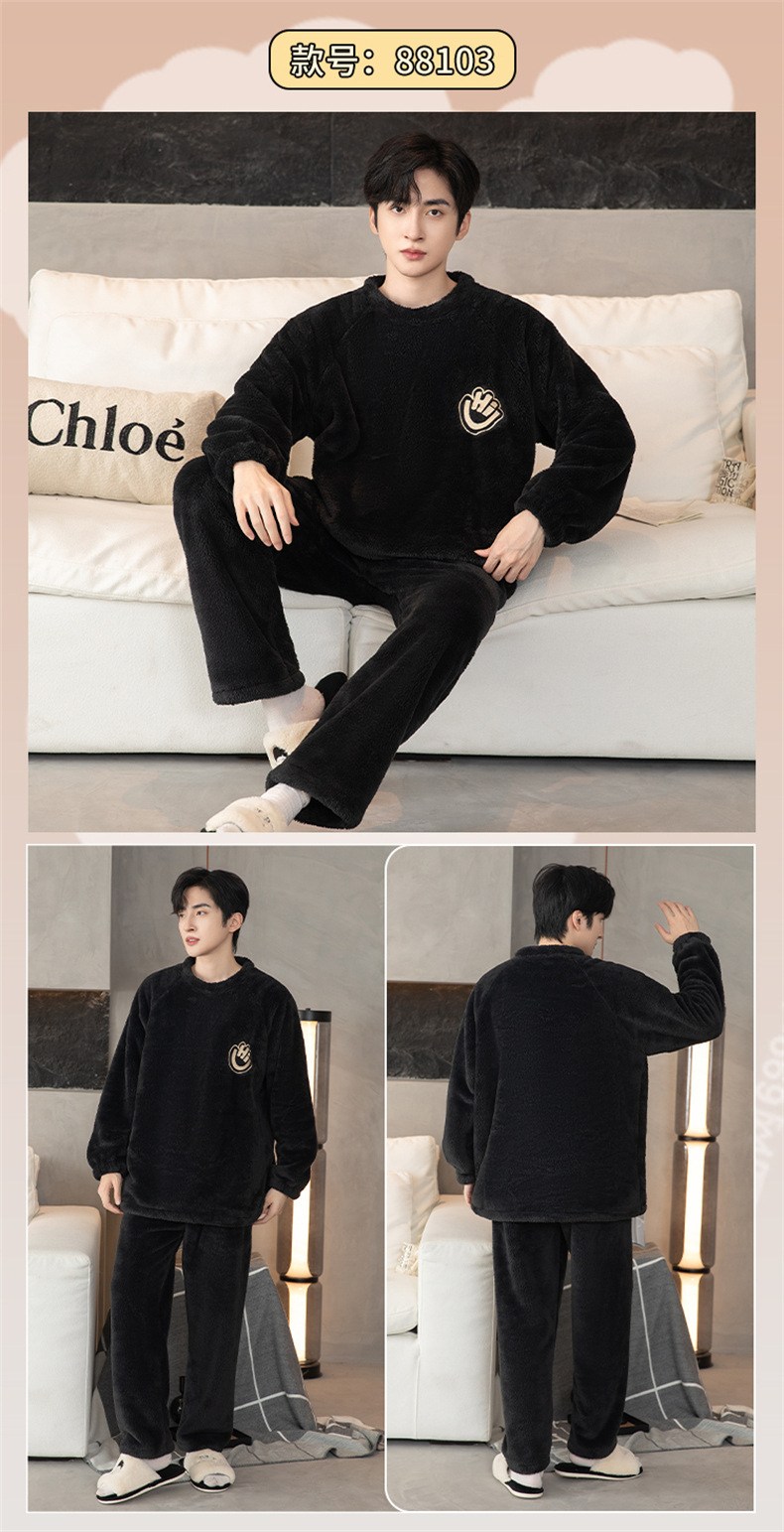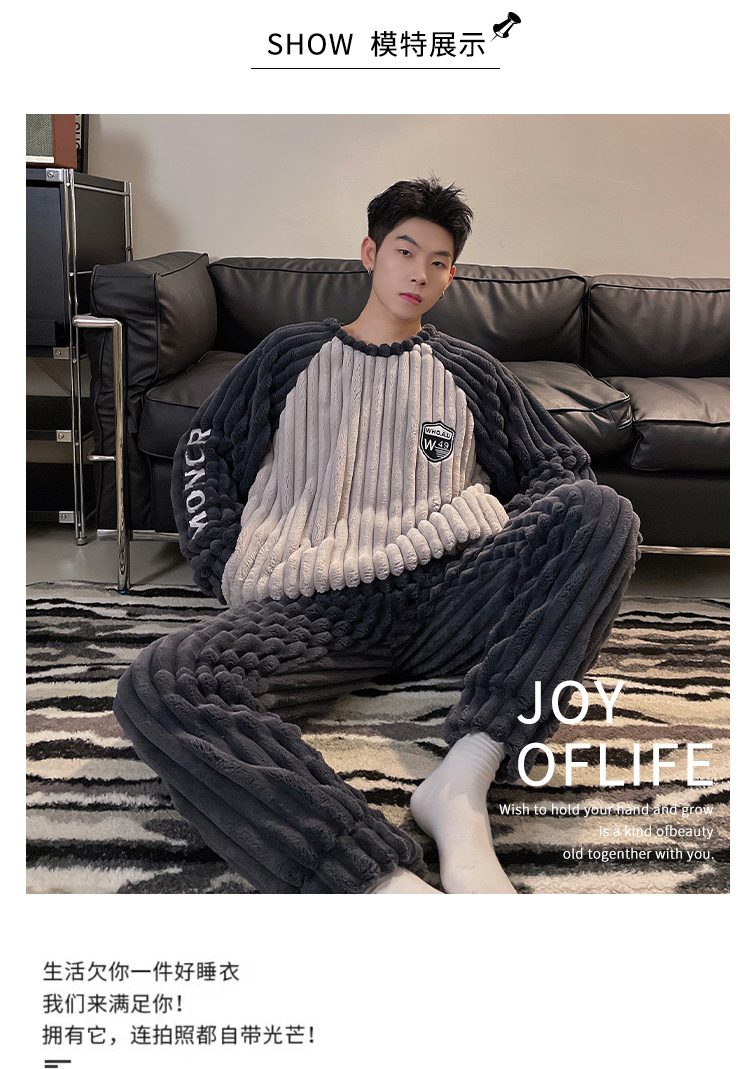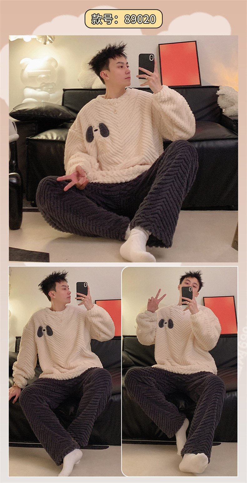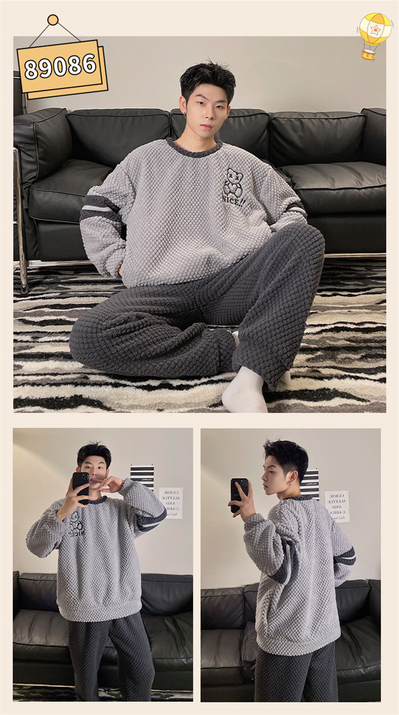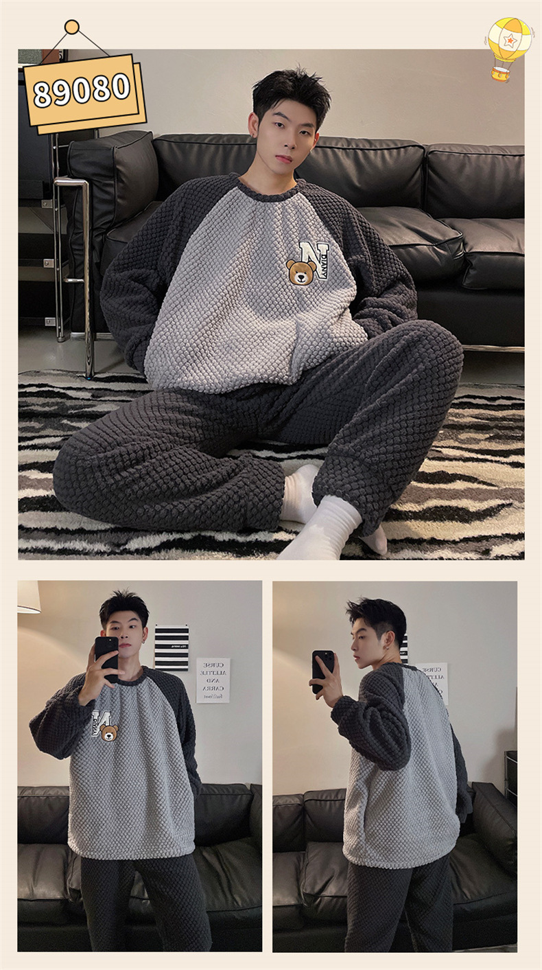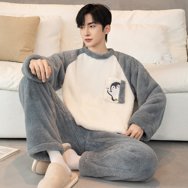 2024 년 겨울 새 플란넬 남성 아웃웨어 두꺼운 파자마 긴 소매 바지 플러시 홈 의류 세트스토어 가기