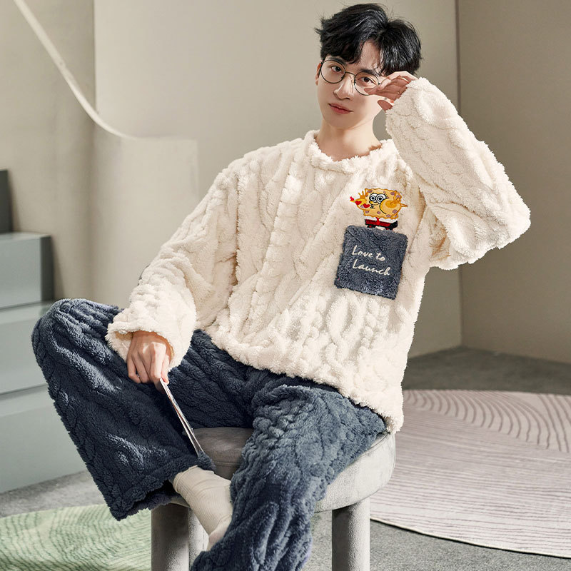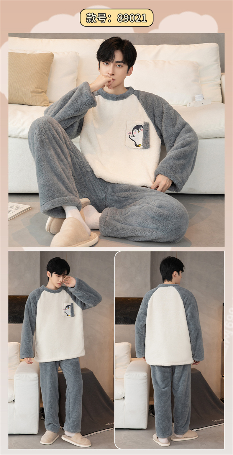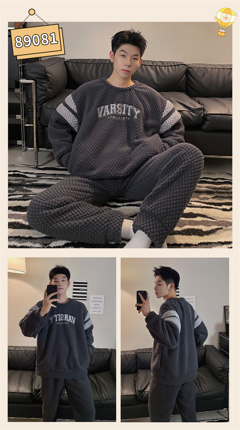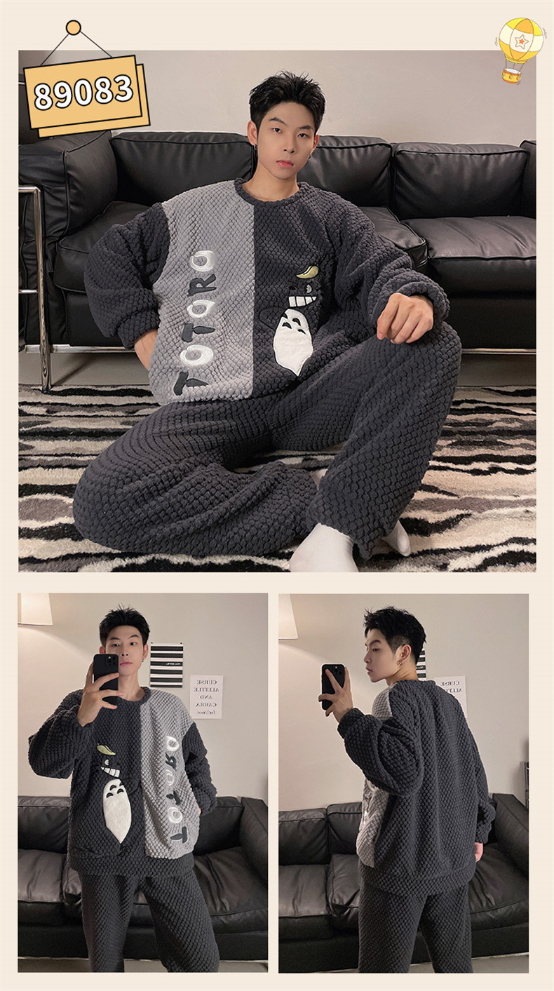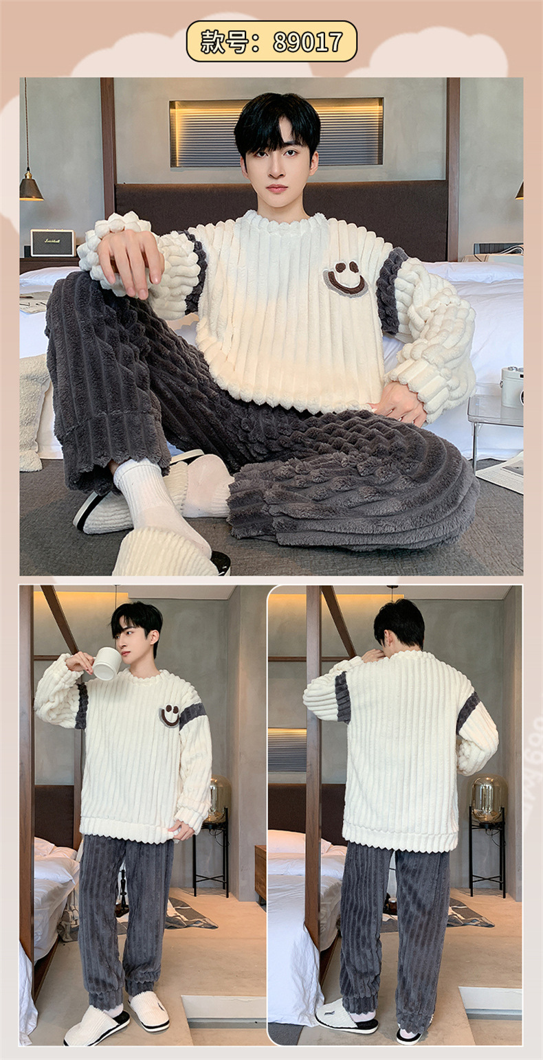 2024 년 겨울 새 플란넬 남성 아웃웨어 두꺼운 파자마 긴 소매 바지 플러시 홈 의류 세트스토어 가기