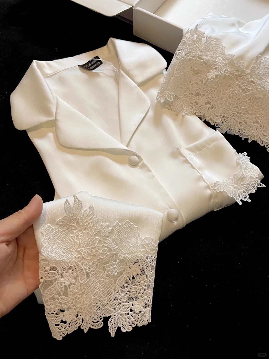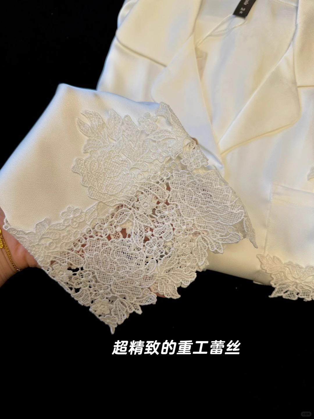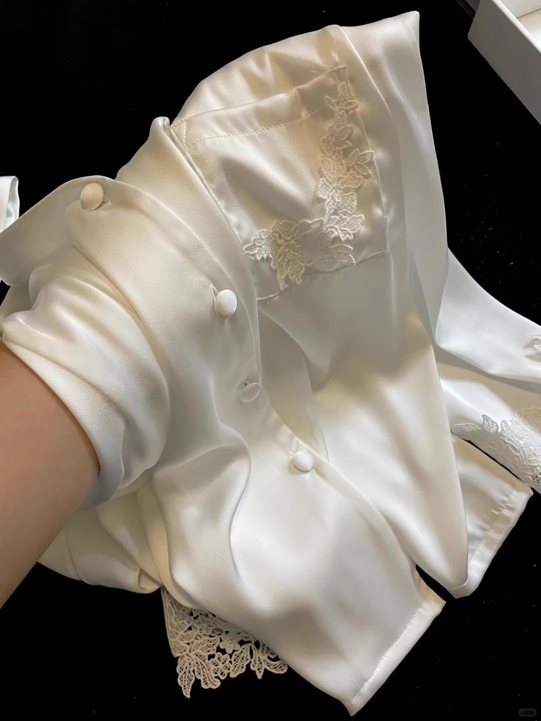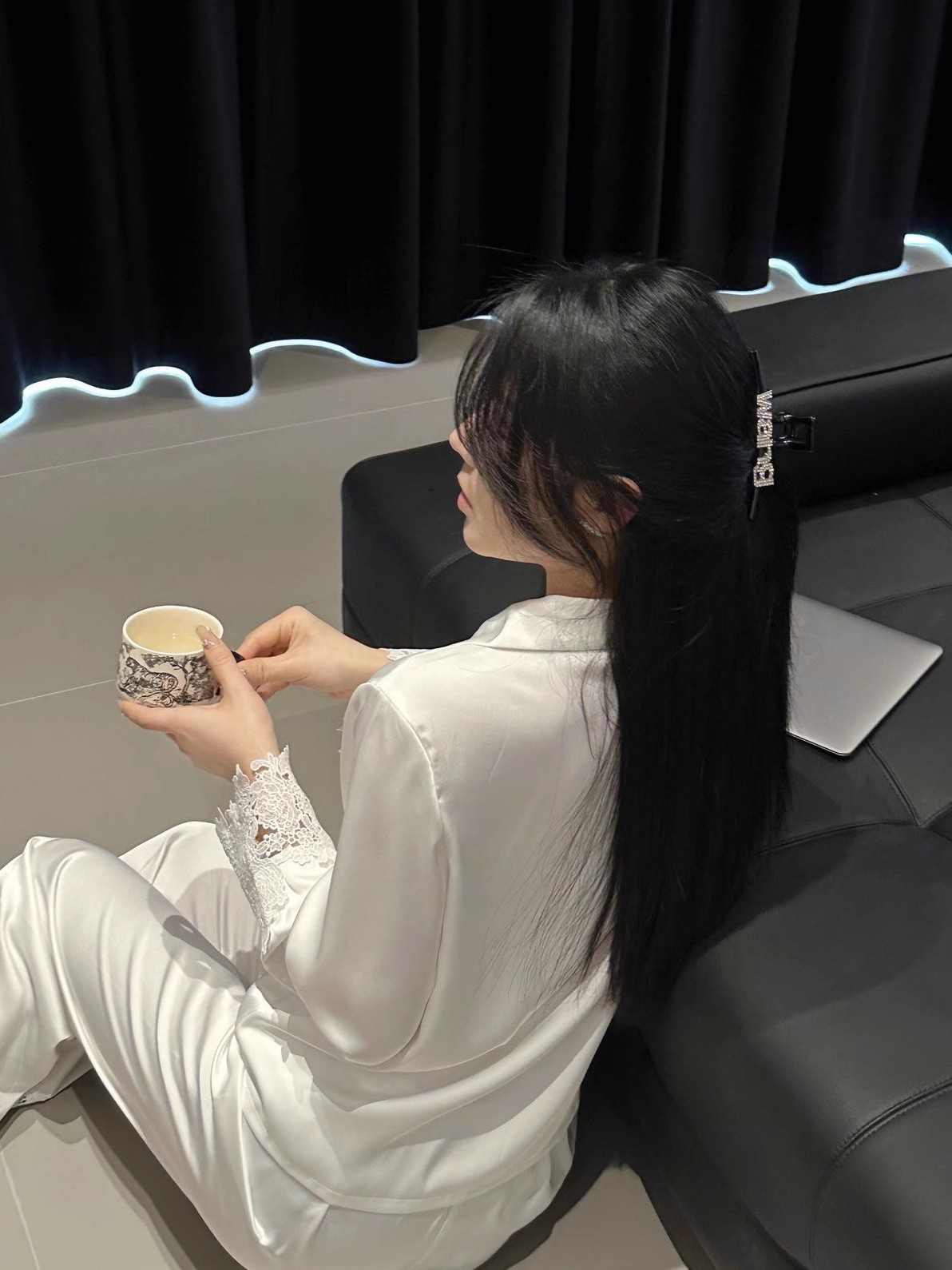 여성을위한 고급스러운 얼음과 눈 실크 잠옷 봄과 여름 새로운 긴팔 바지 달콤한 레이스 소녀 홈웨어 세트