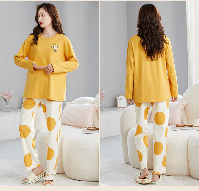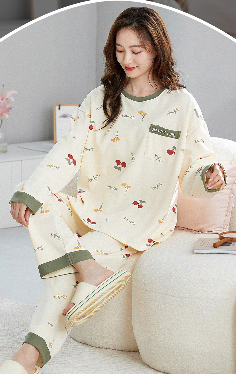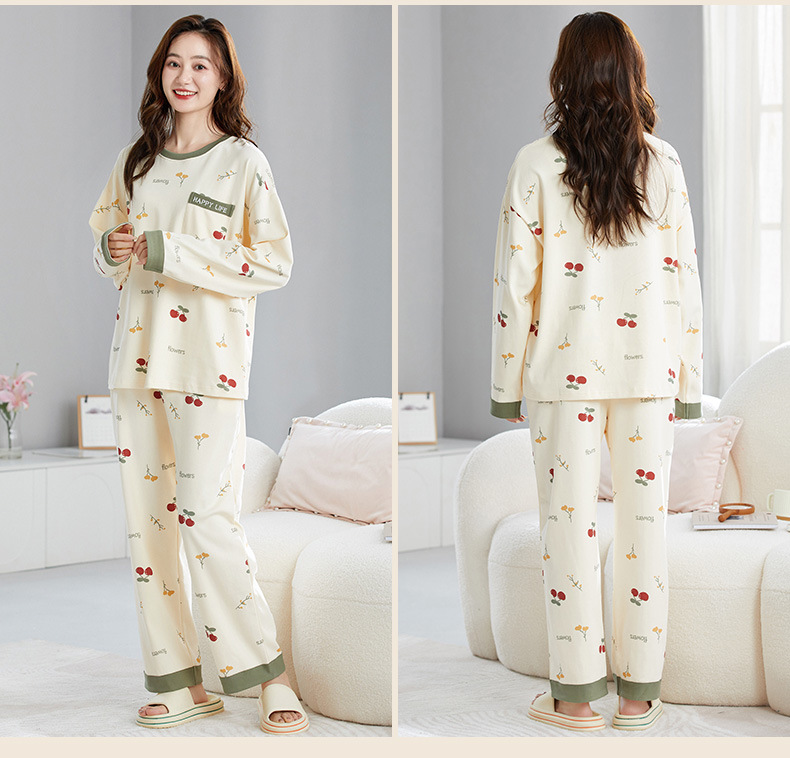 2024 긴 소매 잠옷 여성의 가을 만화 얇은 면 가슴 패드 홈 옷은 봄, 가을, 겨울 세트 착용 할 수 있습니다