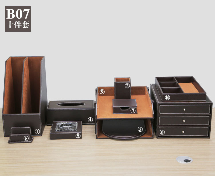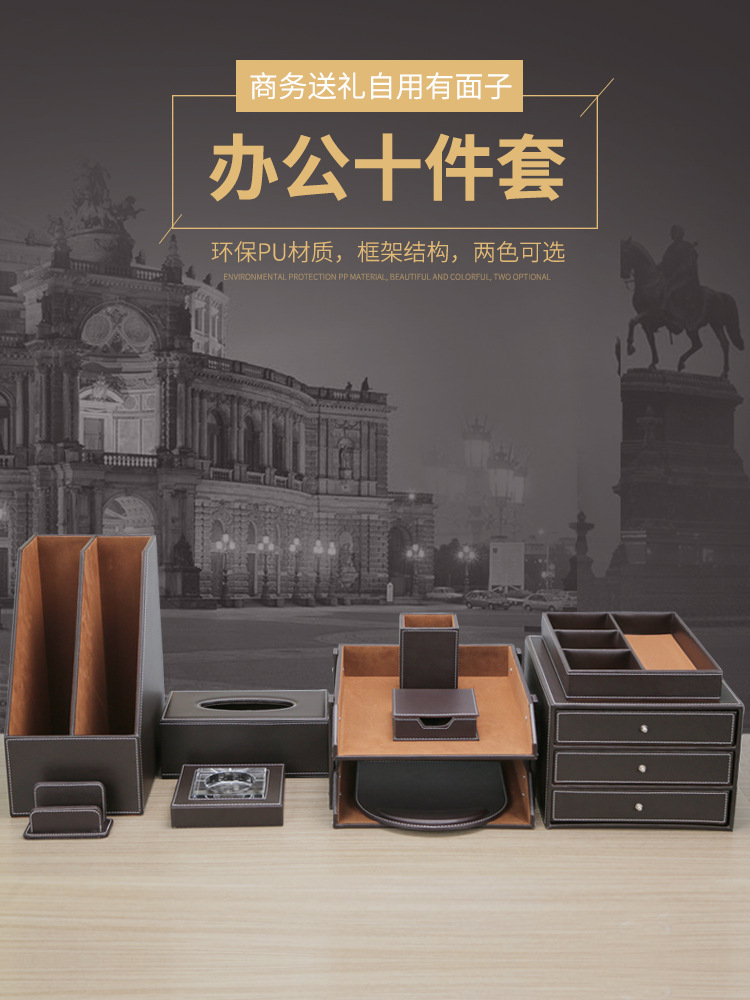 비즈니스 가죽 사무용품 10 조각 세트 세트 선물 펜 홀더 데스크탑 파일 캐비닛 데스크탑 저장 상자스토어 가기