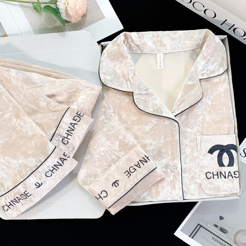 2024 뜨거운 판매 골드 다이아몬드 벨벳 가을과 겨울 긴 소매 두꺼운 세트 패션 따뜻한 홈 의류 여성용 파자마스토어 가기