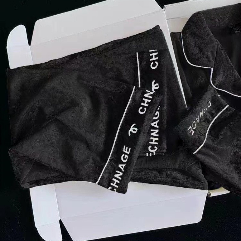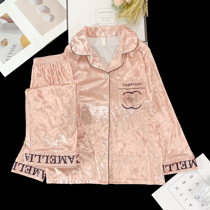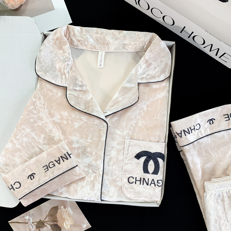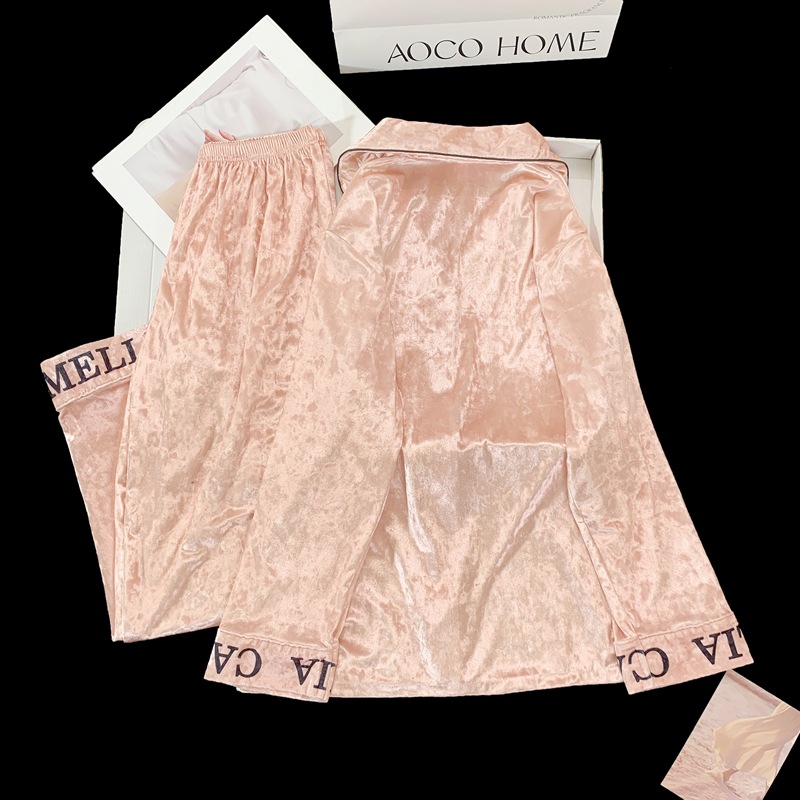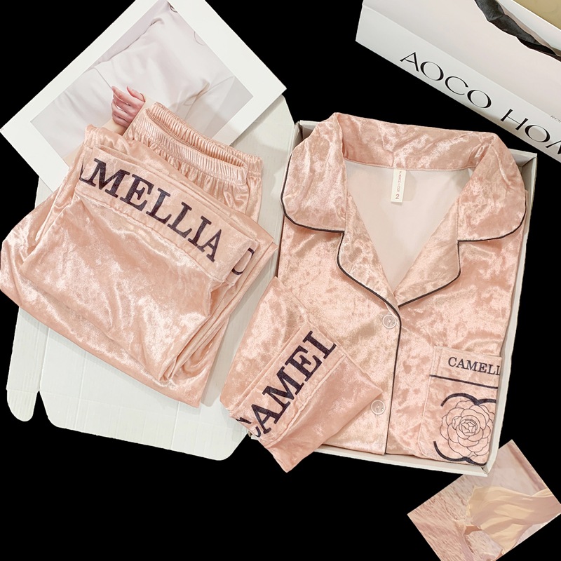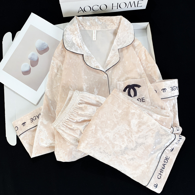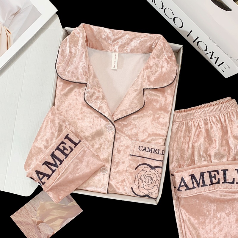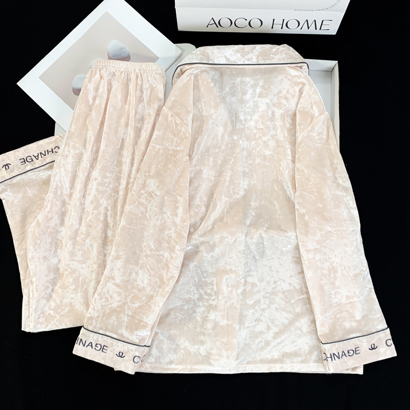 2024 뜨거운 판매 골드 다이아몬드 벨벳 가을과 겨울 긴 소매 두꺼운 세트 패션 따뜻한 홈 의류 여성용 파자마