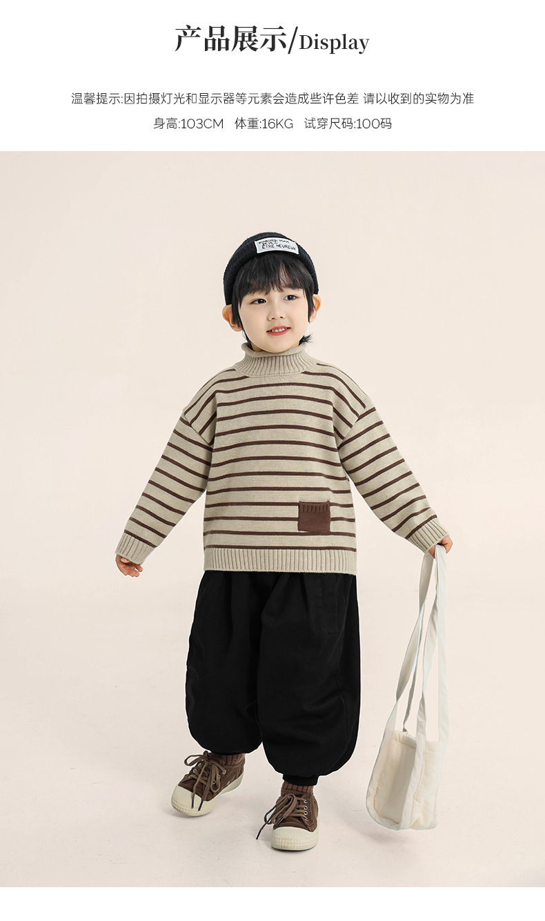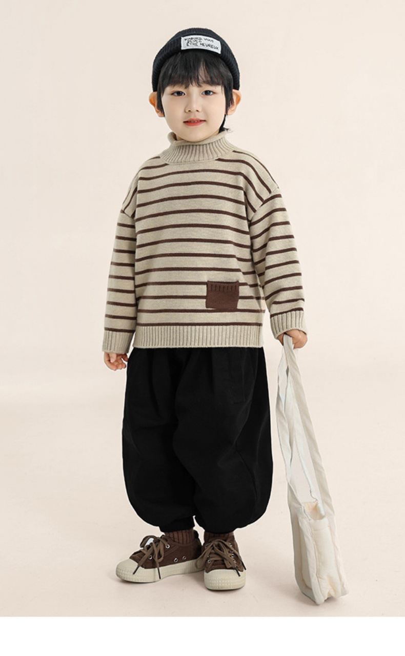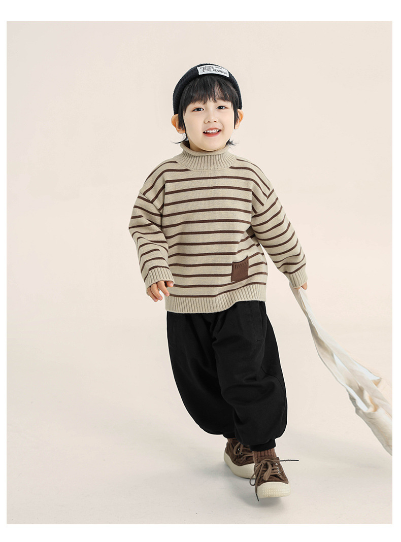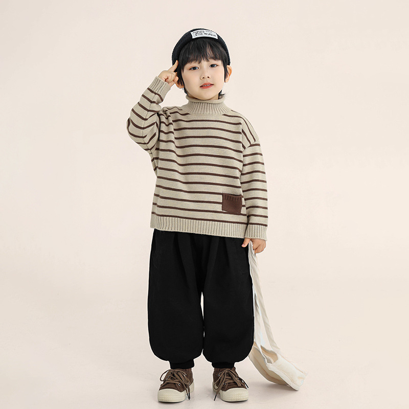 장구 아동복 소년 스웨터 터틀넥 어린이 겨울 새 스트라이프 스웨터 어린이 한국 풀오버 탑
