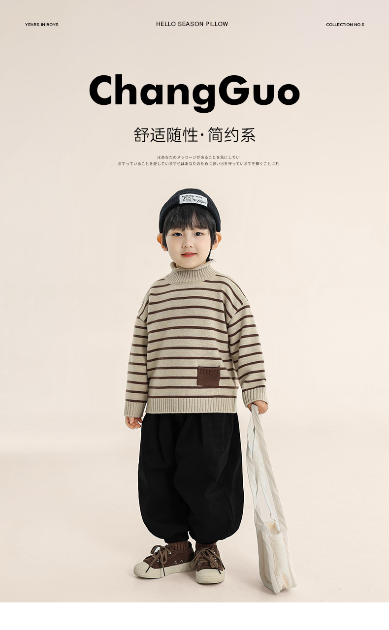 장구 아동복 소년 스웨터 터틀넥 어린이 겨울 새 스트라이프 스웨터 어린이 한국 풀오버 탑스토어 가기