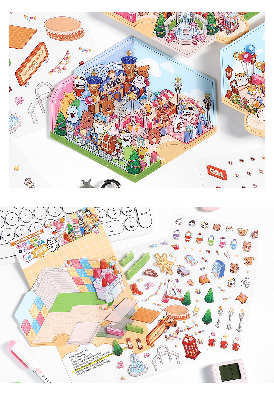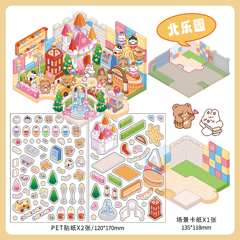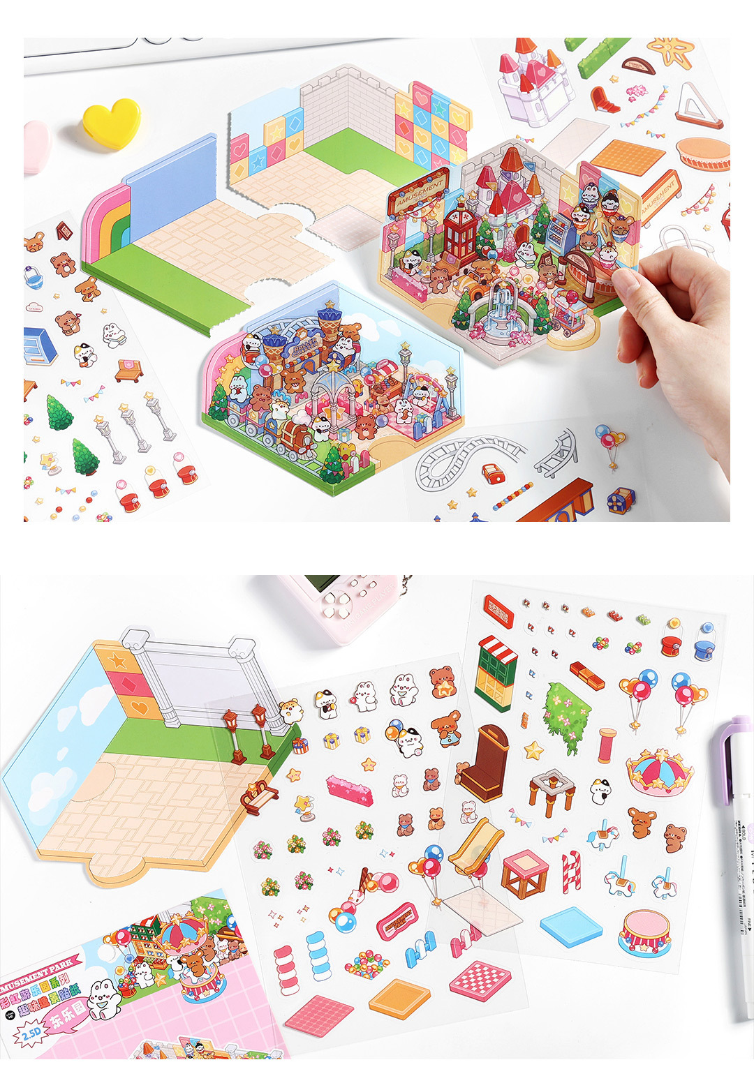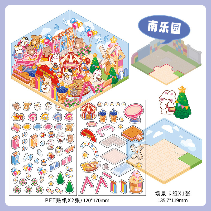 인스틸. Me2.5D 조경 스티커 무지개 놀이 공원 시리즈 귀여운 바람 미니어처 스태킹 캐빈 손 계정 스티커스토어 가기