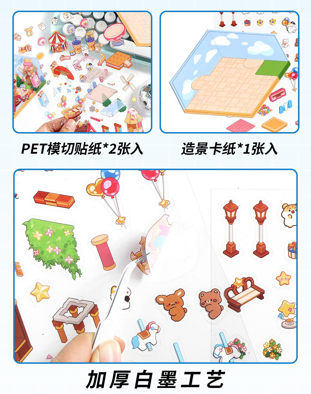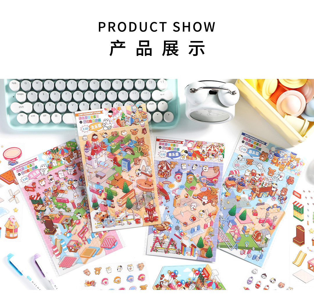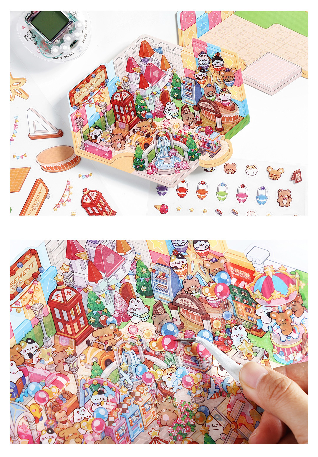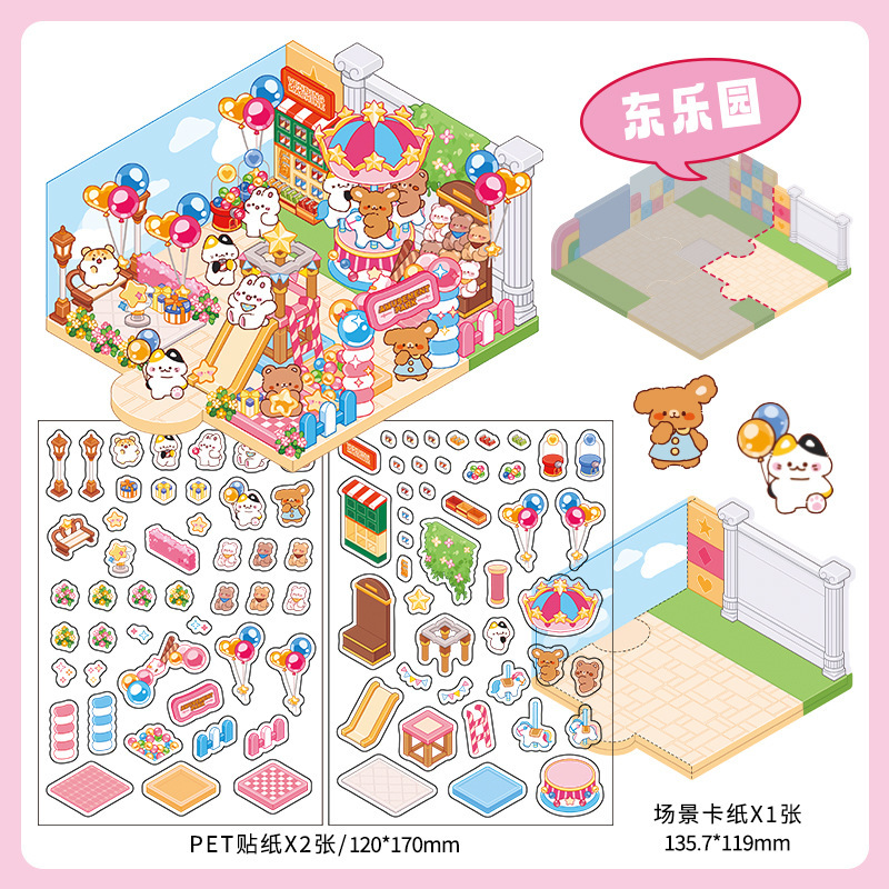 인스틸. Me2.5D 조경 스티커 무지개 놀이 공원 시리즈 귀여운 바람 미니어처 스태킹 캐빈 손 계정 스티커스토어 가기