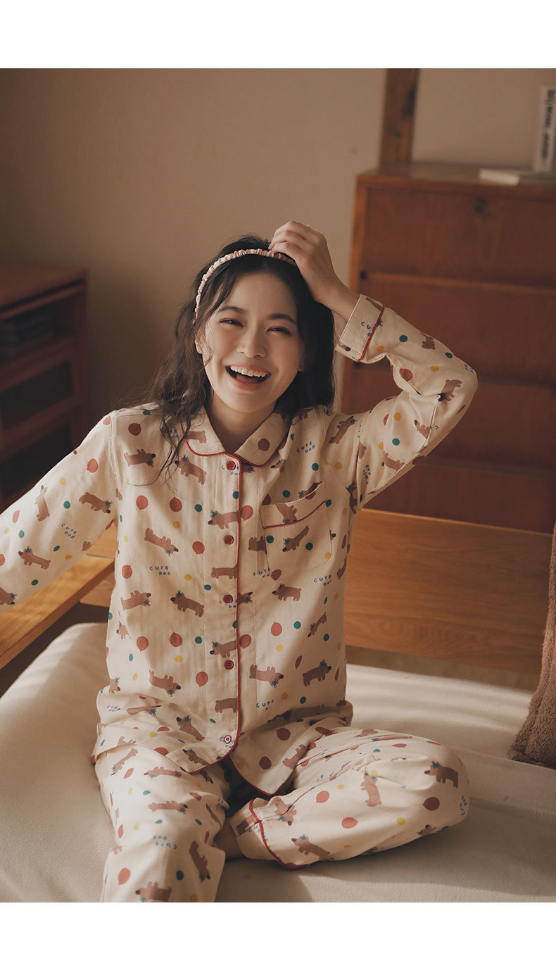 • 여성용 - 베이지 강아지 - 플란넬 (면 100%)