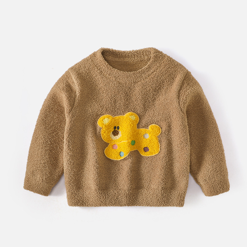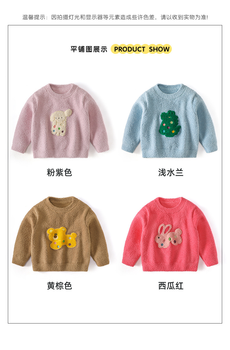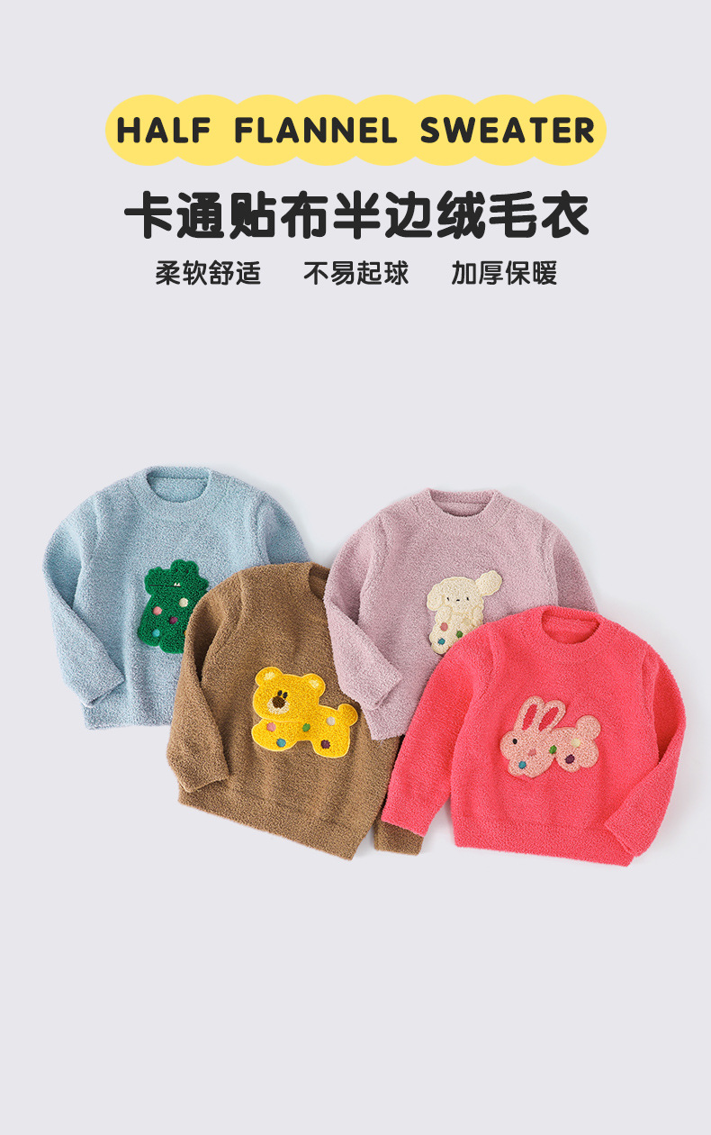 어린이 반 벨벳 스웨터는 겨울 만화 패치 풀오버 소년 소녀 부드러운 홈 스웨터를 두껍게 만들었습니다.스토어 가기