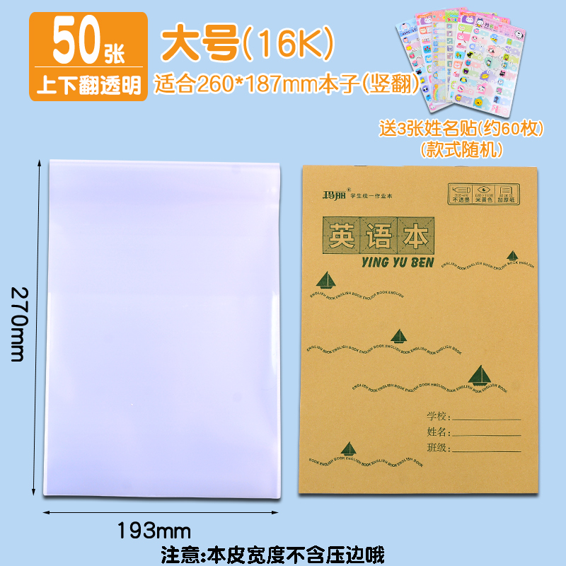 초등학생 피부 보호 슬리브 수직 16K 투명 플라스틱 책 슬리브 32K 1 학년 운동 책 가방 가죽스토어 가기