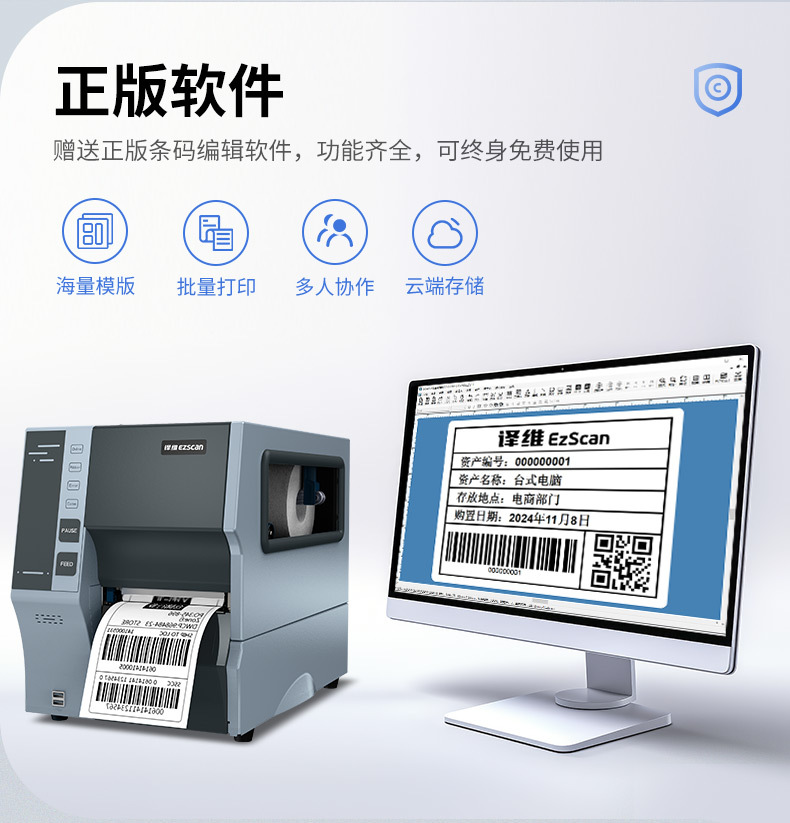 Yi Wei E78L 산업 라벨 바코드 프린터 접착 구리 보드 종이 아시아 실버 종이 태그 세척 마크스토어 가기