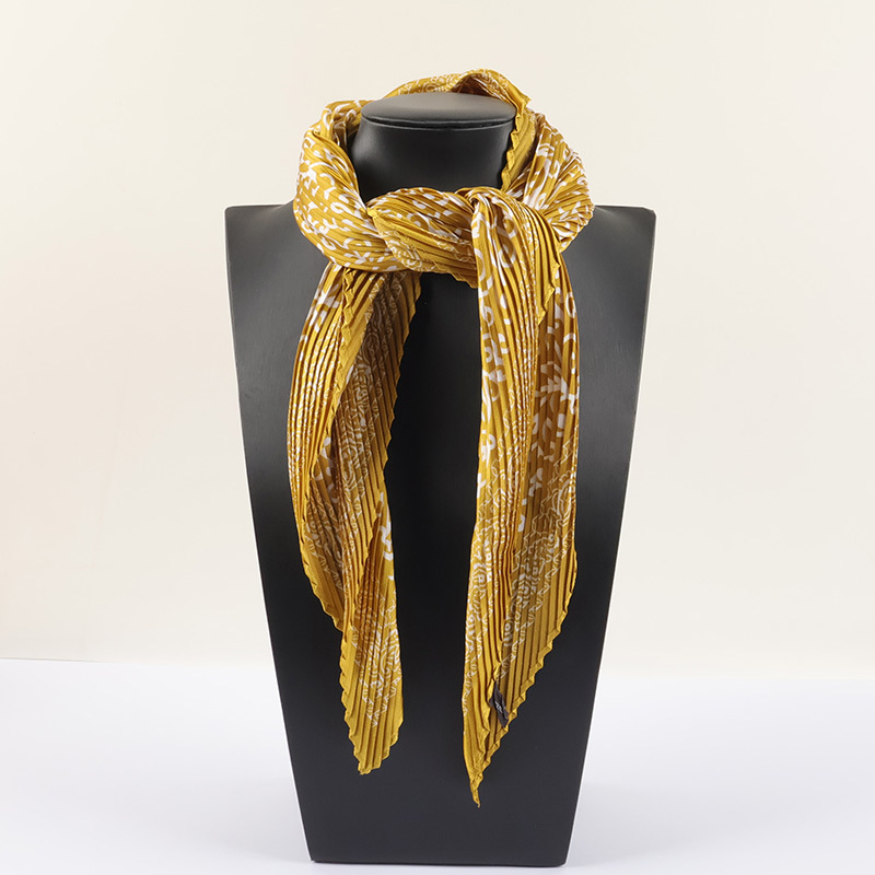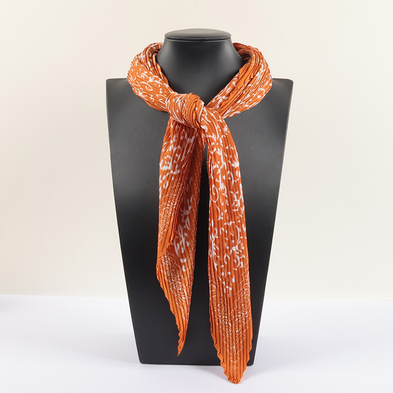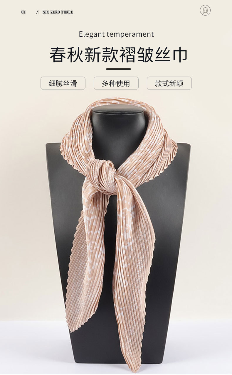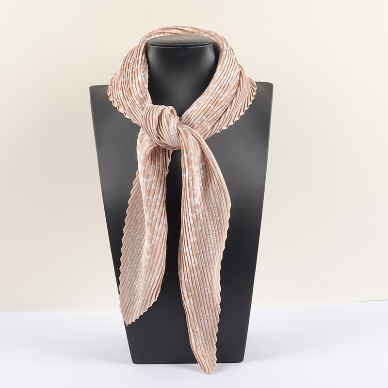 새로운 봄과 가을 빈티지 크럼플 작은 실크 스카프 여성의 한국 예술적 모든 경기 주름 장식 작은 스카프 인쇄 삼각형 스카프
