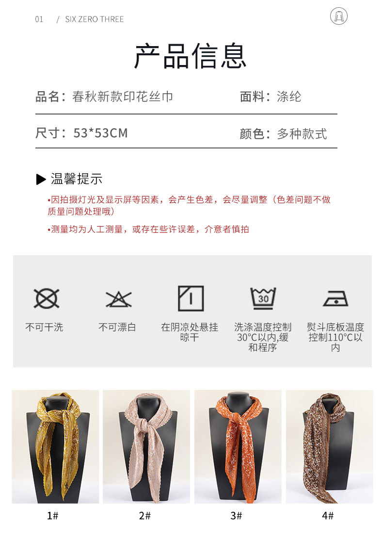 새로운 봄과 가을 빈티지 크럼플 작은 실크 스카프 여성의 한국 예술적 모든 경기 주름 장식 작은 스카프 인쇄 삼각형 스카프스토어 가기
