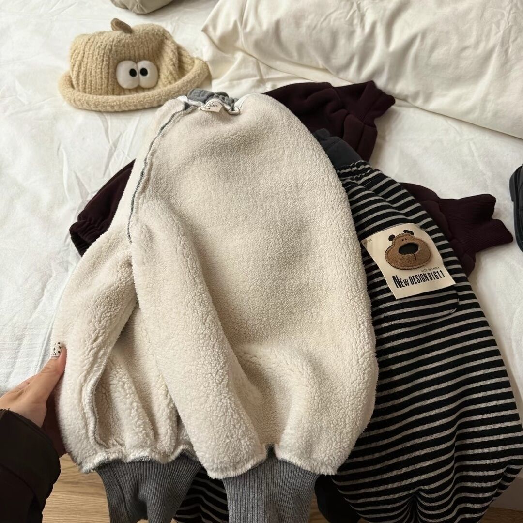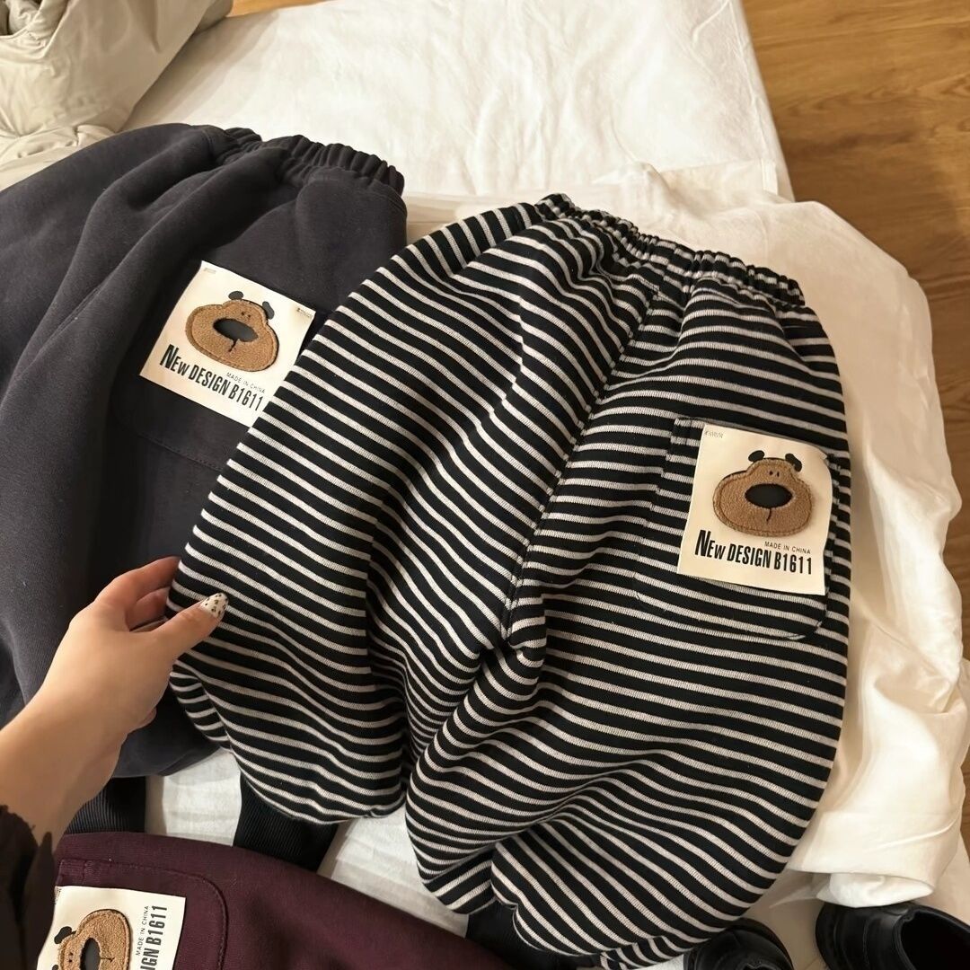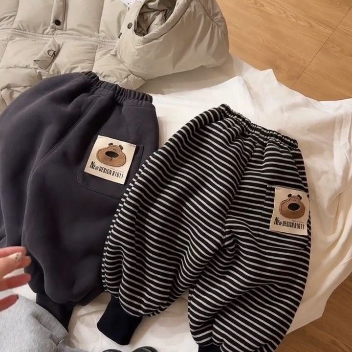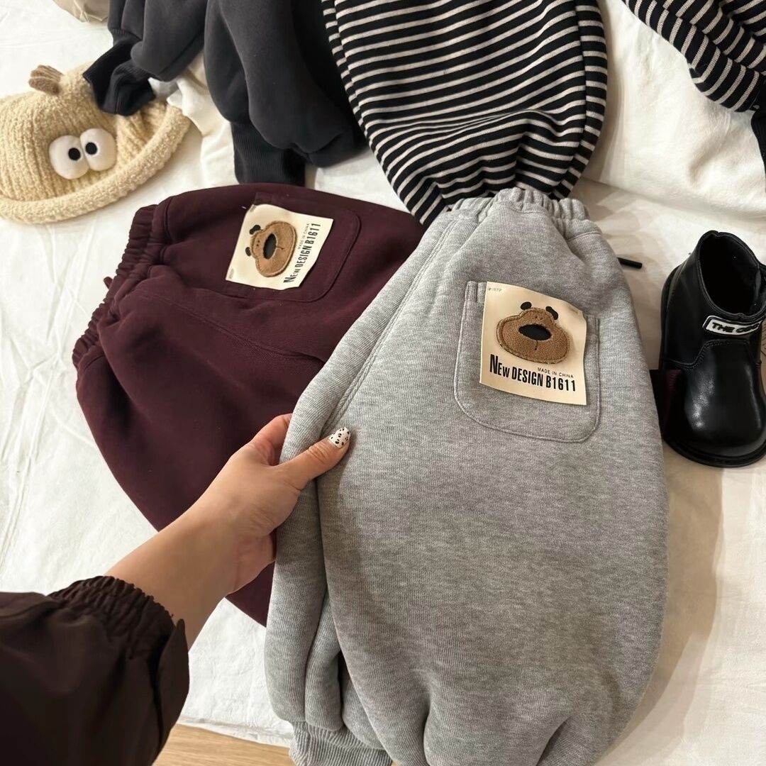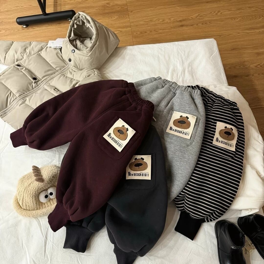 어린이용 양털 안감 스웨트팬츠, 두꺼운 2025 겨울용 남녀공용 만화 캐릭터 캐주얼 스포츠 레깅스 팬츠, 트렌디스토어 가기