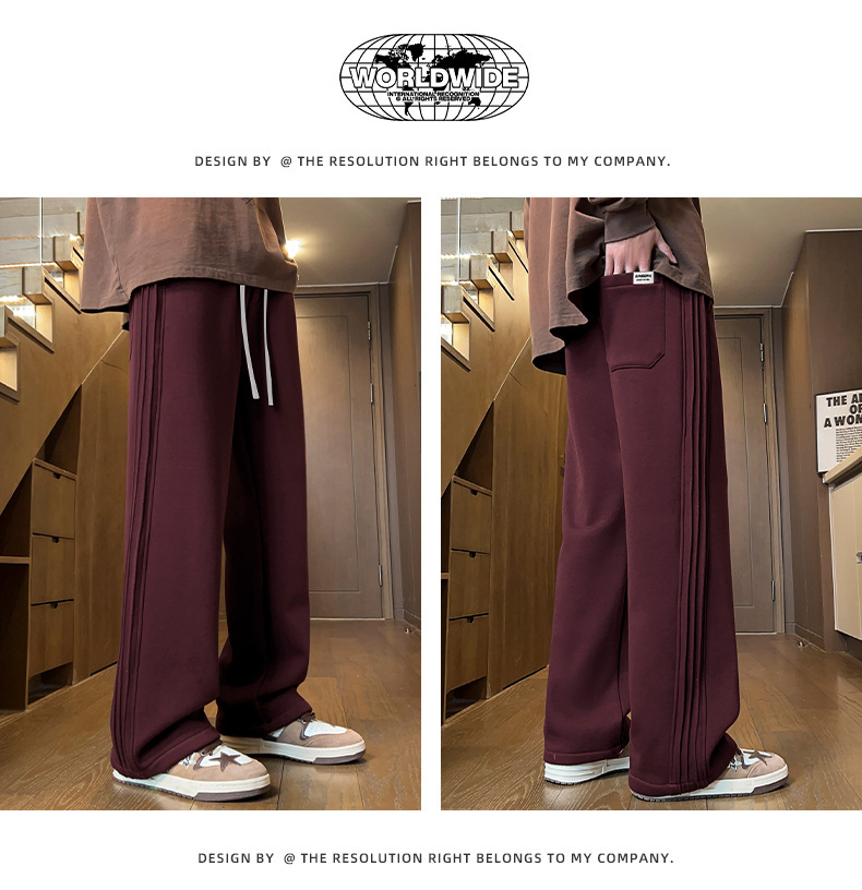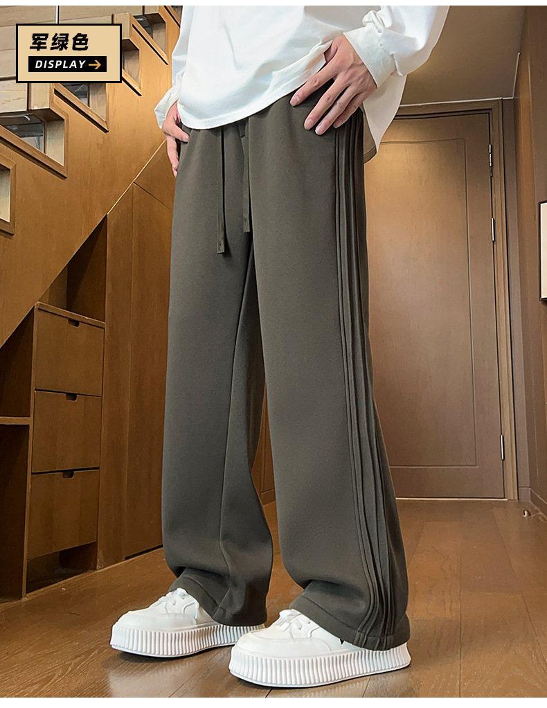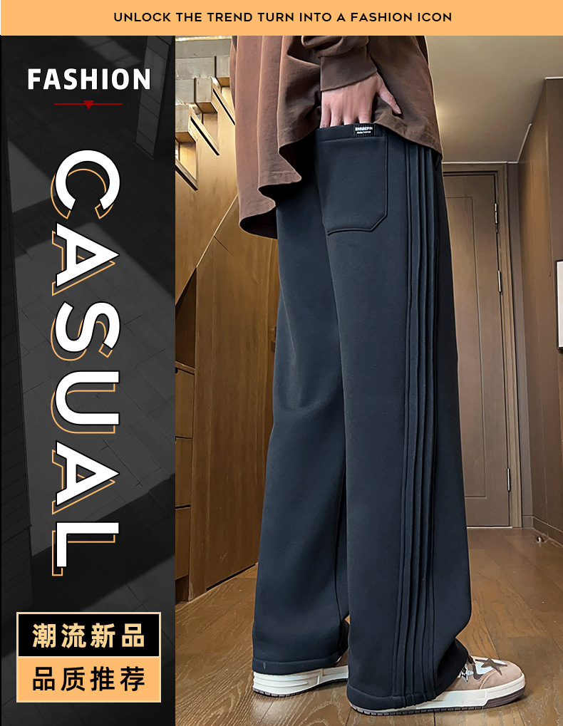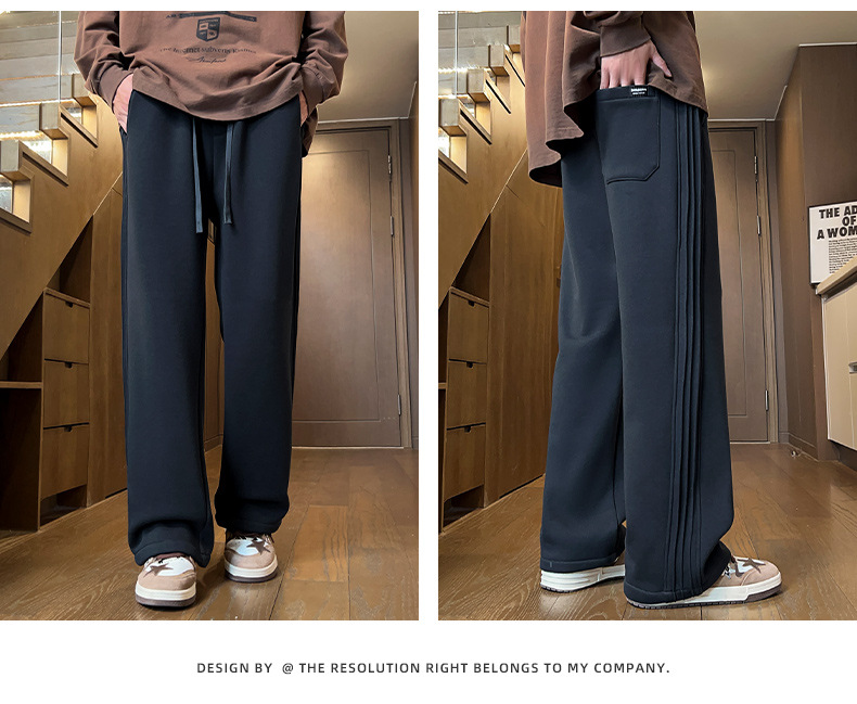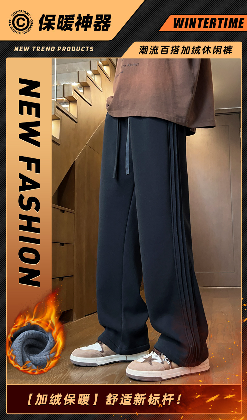 Danpaoni | 기모 스포츠 바지 남자 니트 3 바 스트레이트 가을/겨울 캐주얼 스포츠 바지 남자 운동복