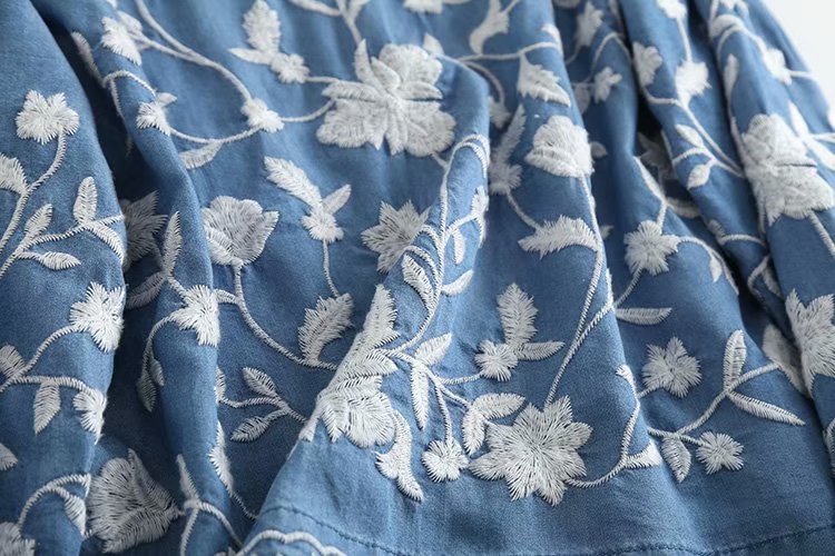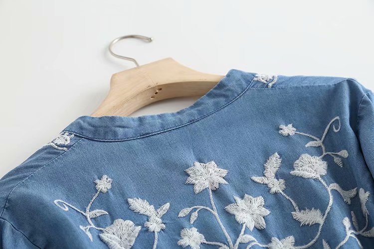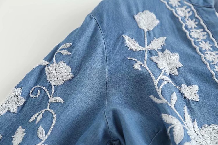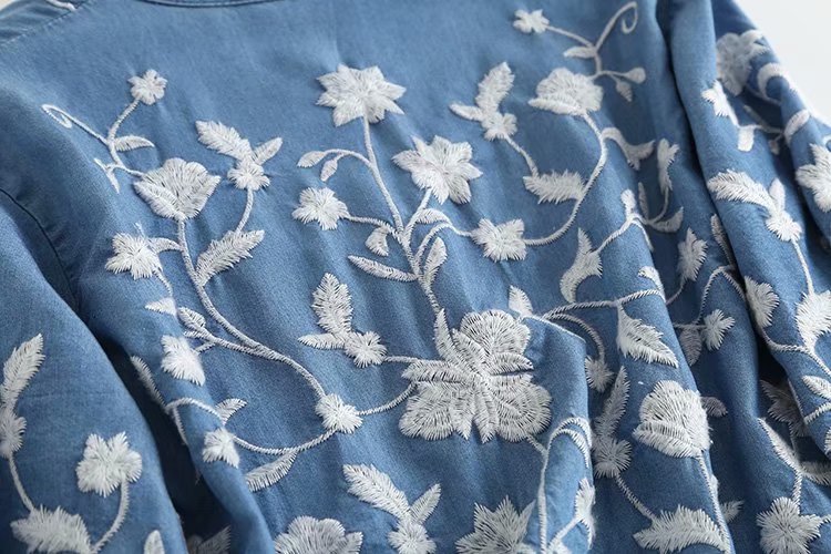 2024 새로운 자수 유럽과 미국 스타일의 여성 가을 도매 전체 길이 긴 소매 셔츠 다크 블루 라이트 블루 개성 거리 데님