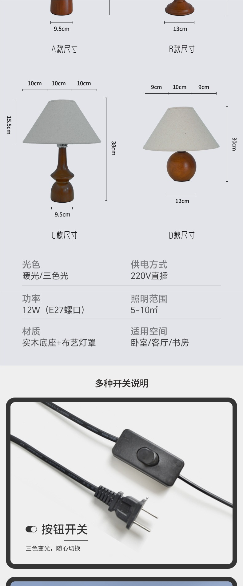 • 12W-220V는 Tmall Elf(3색) 리모컨 + 타이밍을 지원합니다.