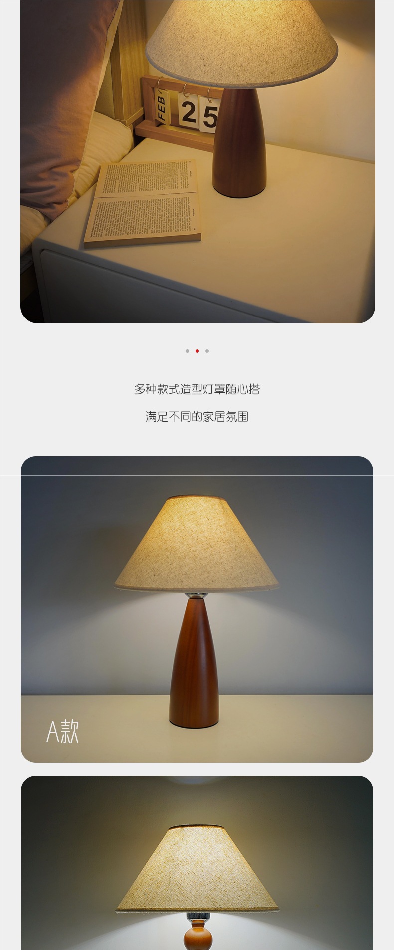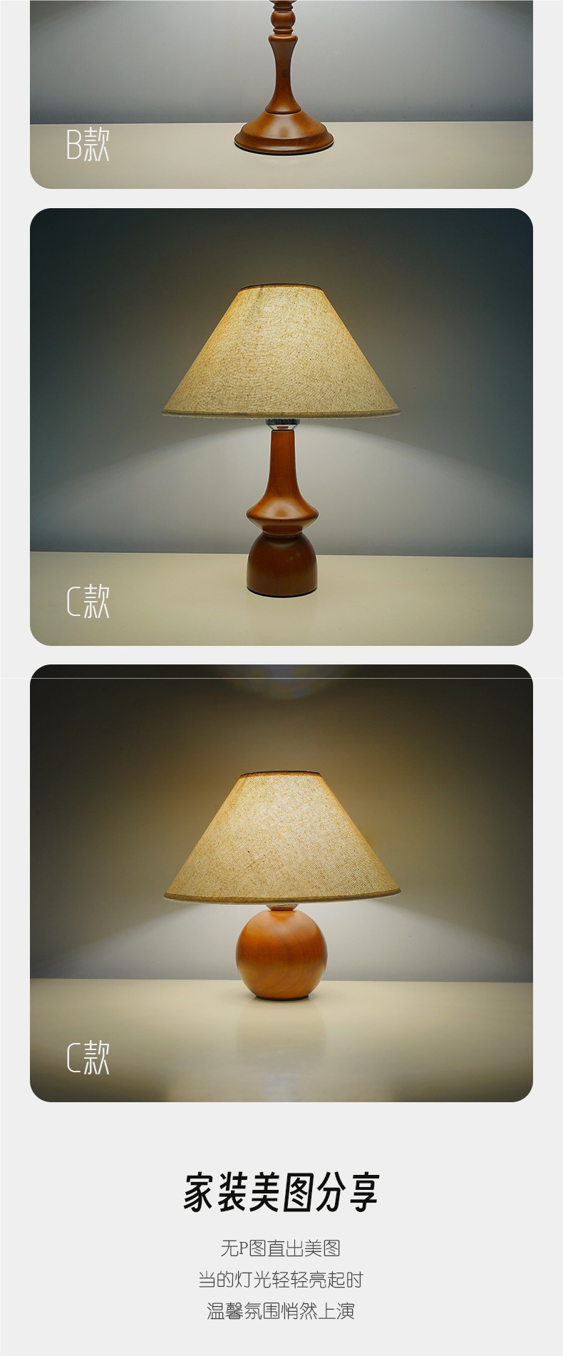 북유럽 오크 침실 침실 램프 프리미엄 센스 레트로 천 테이블 램프 천연 단단한 나무 장식 분위기 야간 조명스토어 가기
