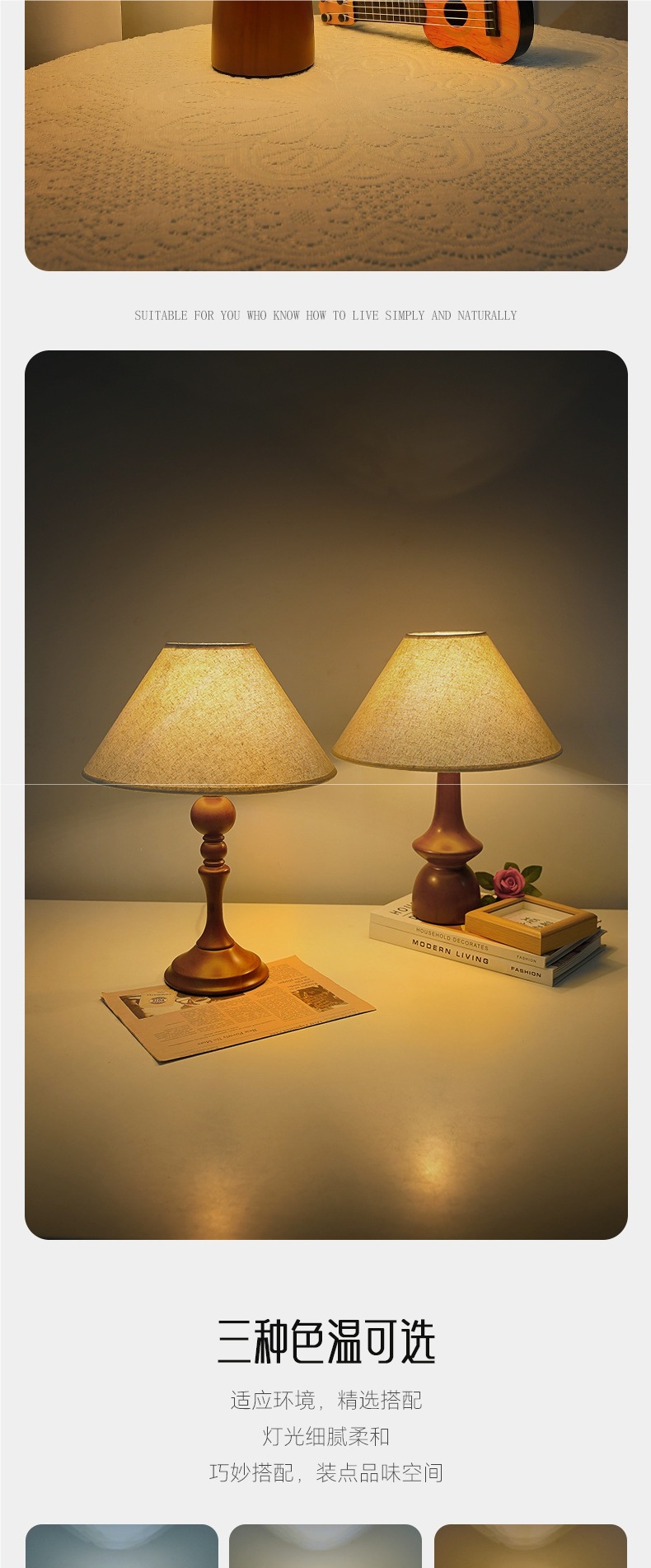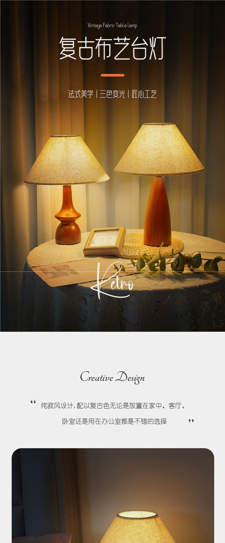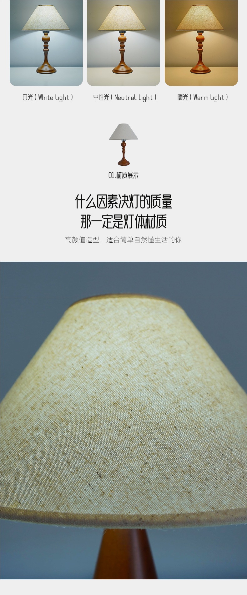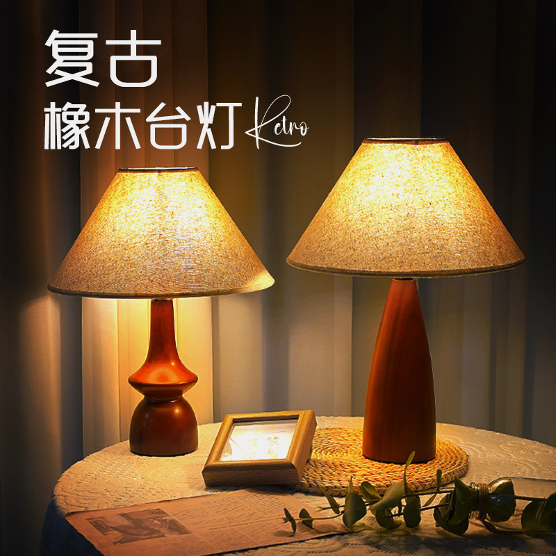 북유럽 오크 침실 침실 램프 프리미엄 센스 레트로 천 테이블 램프 천연 단단한 나무 장식 분위기 야간 조명