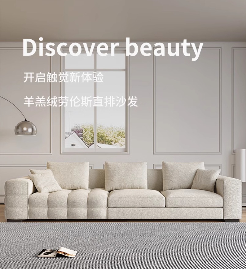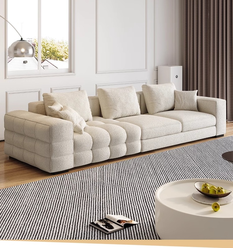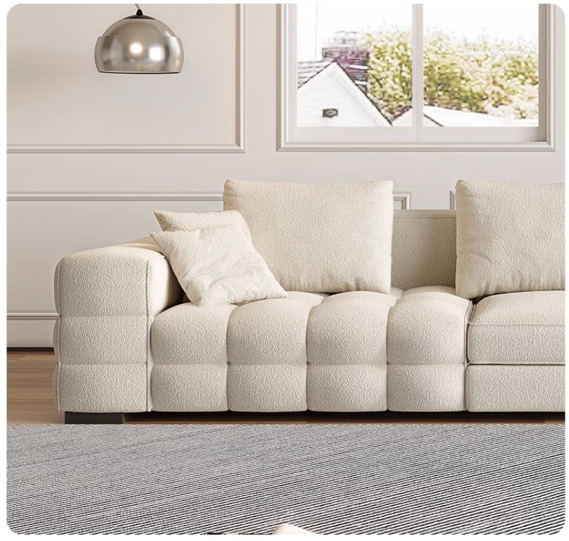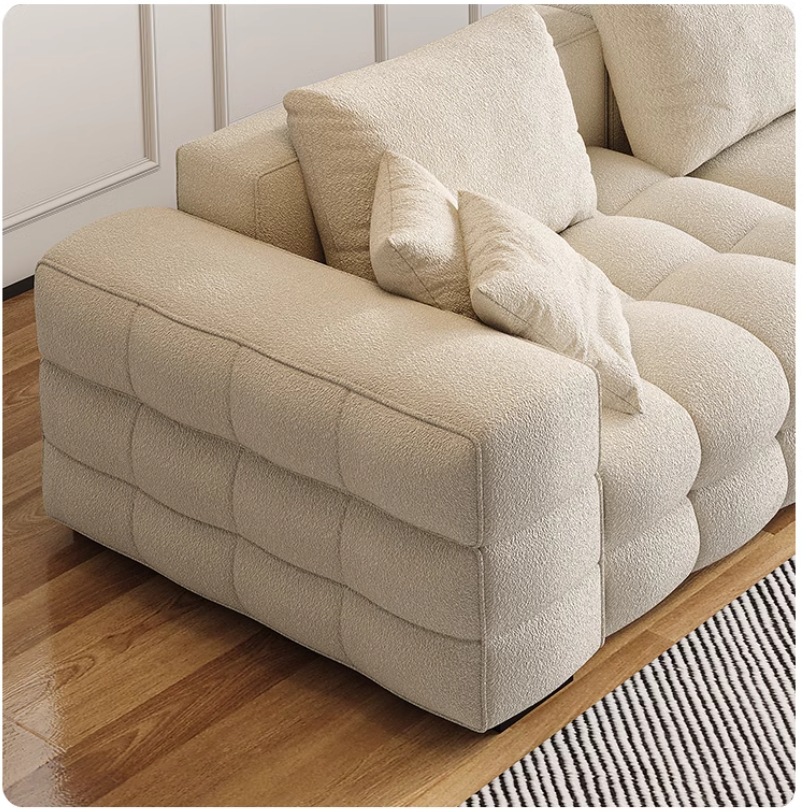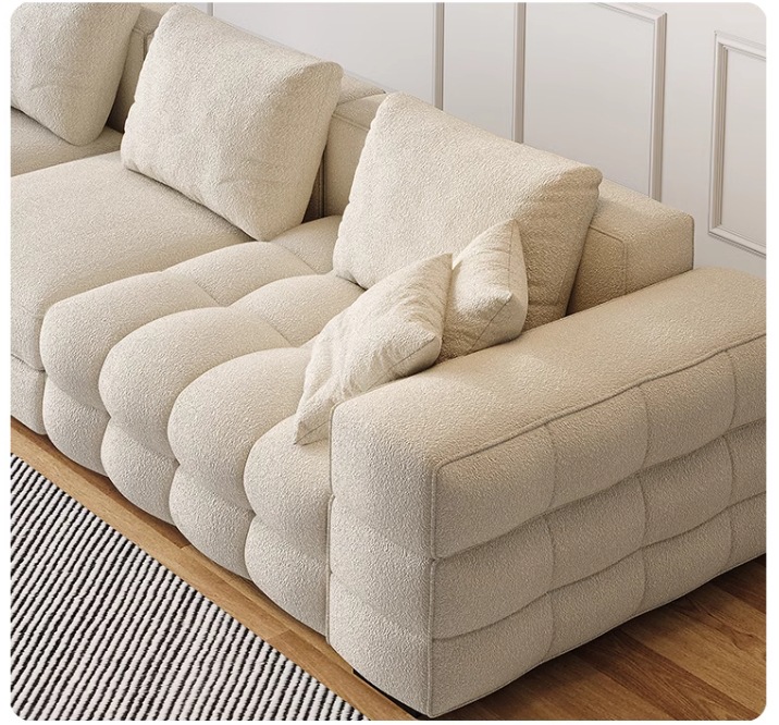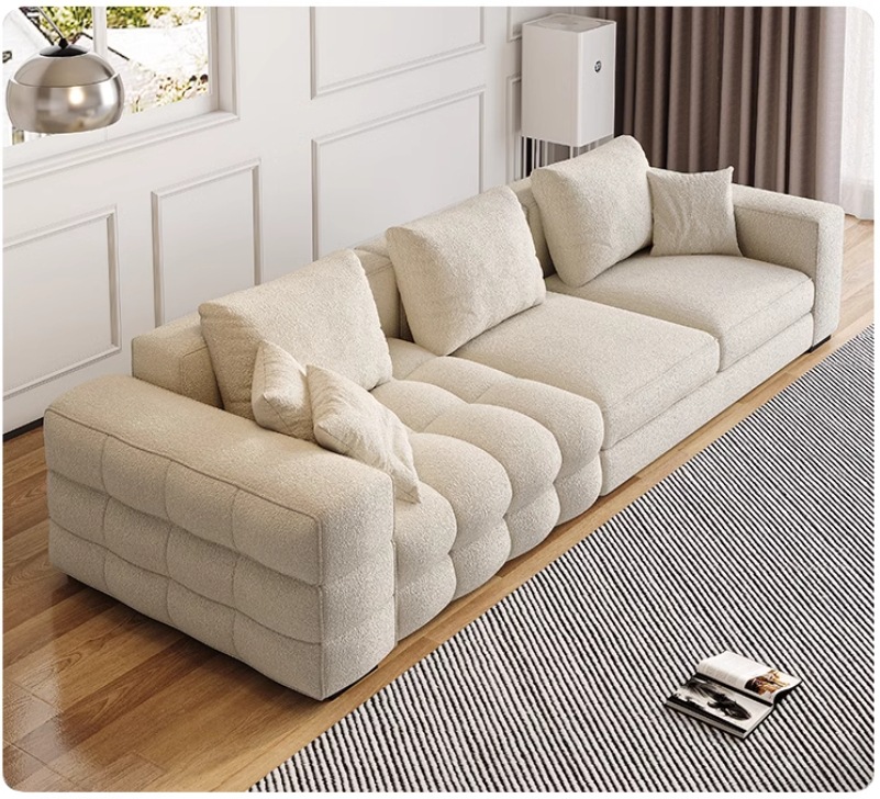 심플한 크림 스타일의 거실 작은 아파트 라이트 럭셔리 미니멀리스트 양털 패브릭 소파 새로운 마시멜로 소파스토어 가기