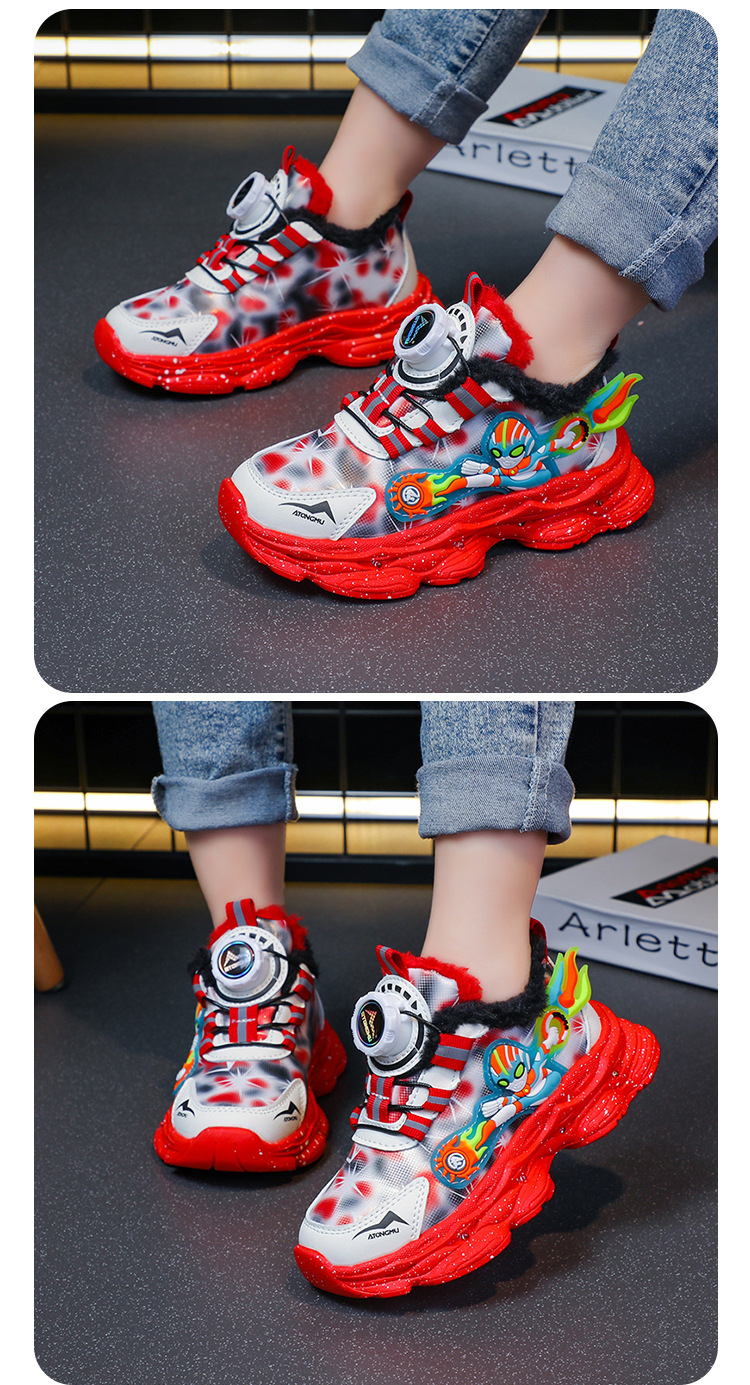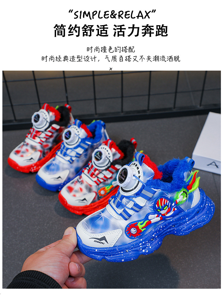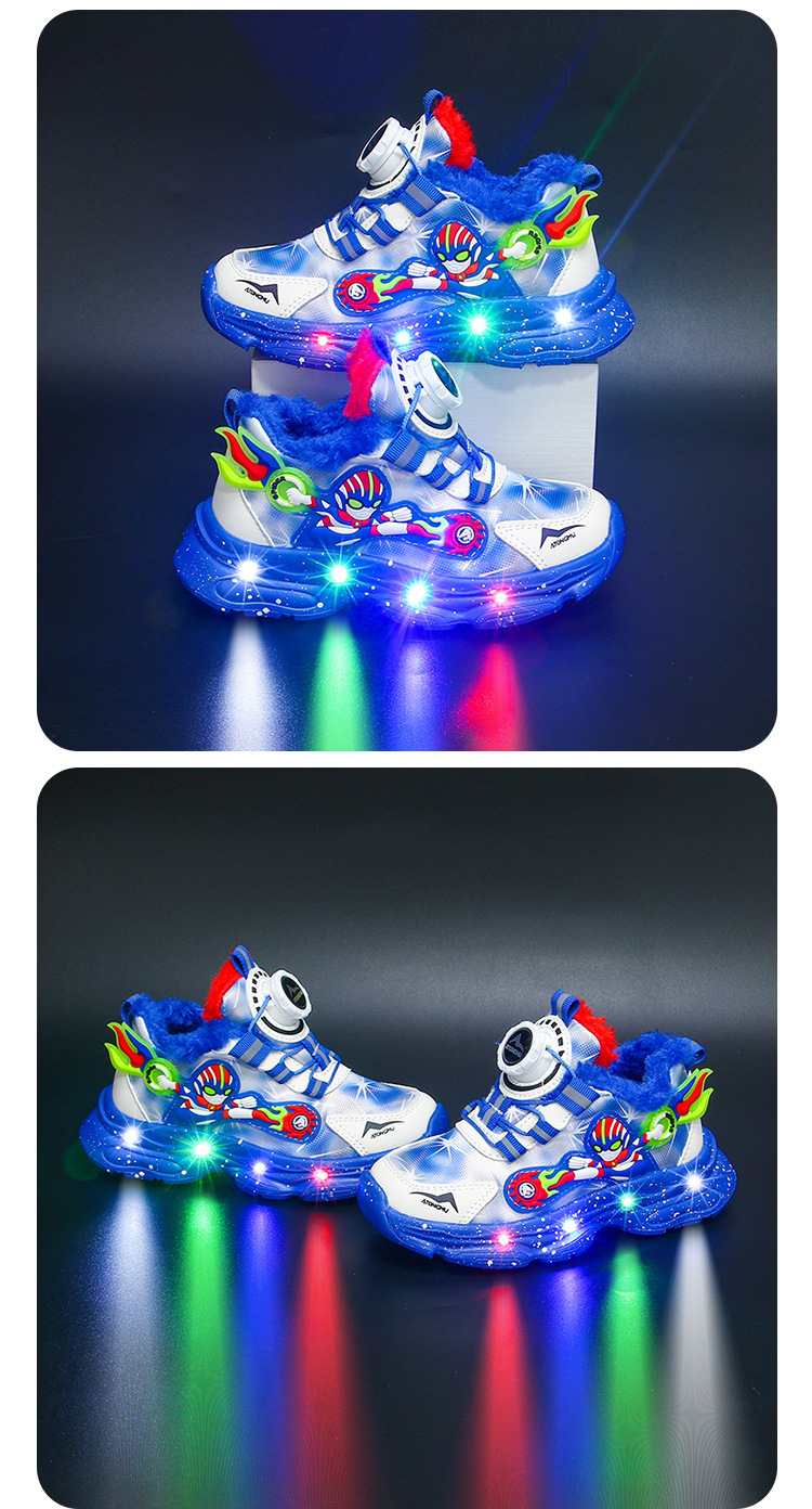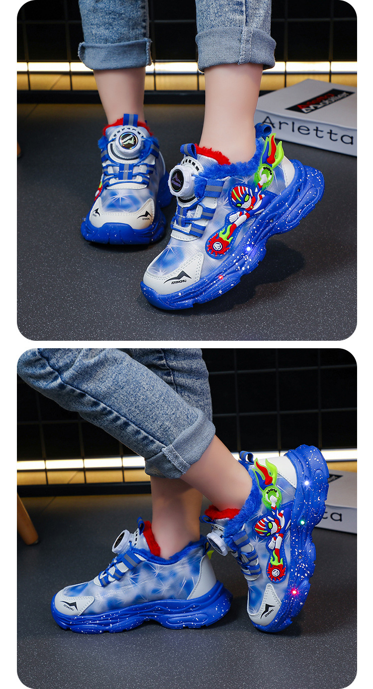 어린이 운동화 조명 2024 가을과 겨울 새 기모 따뜻한 소년 신발 중소 어린이 부드러운 발바닥 올 매치 소년스토어 가기