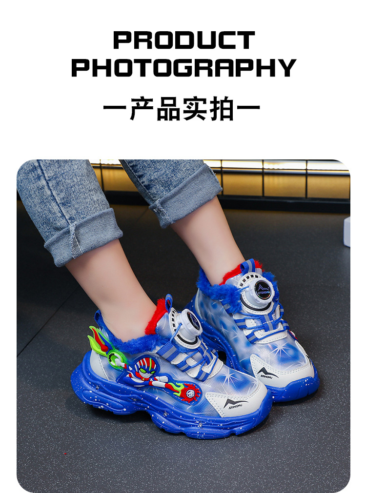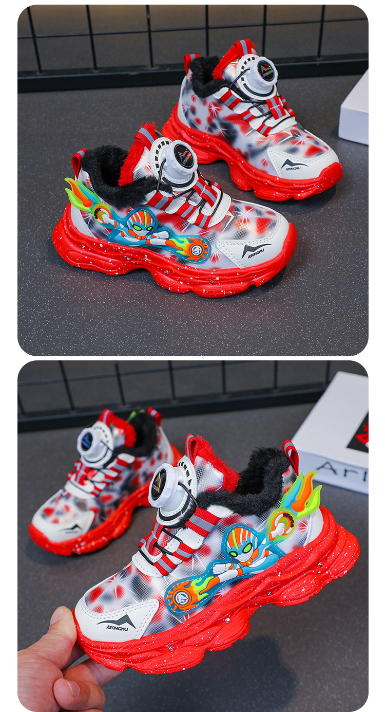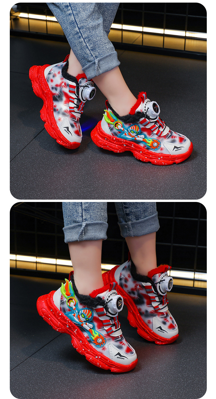 어린이 운동화 조명 2024 가을과 겨울 새 기모 따뜻한 소년 신발 중소 어린이 부드러운 발바닥 올 매치 소년스토어 가기