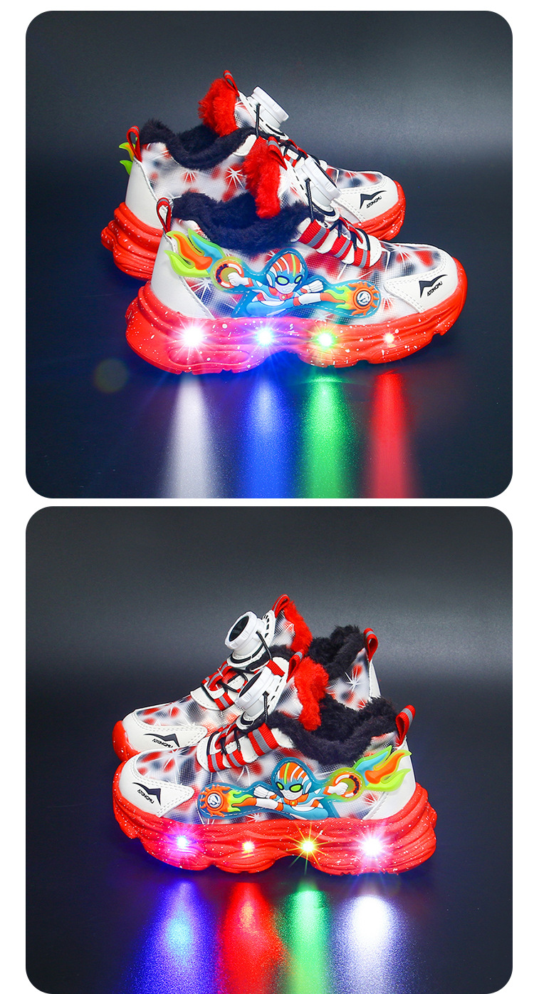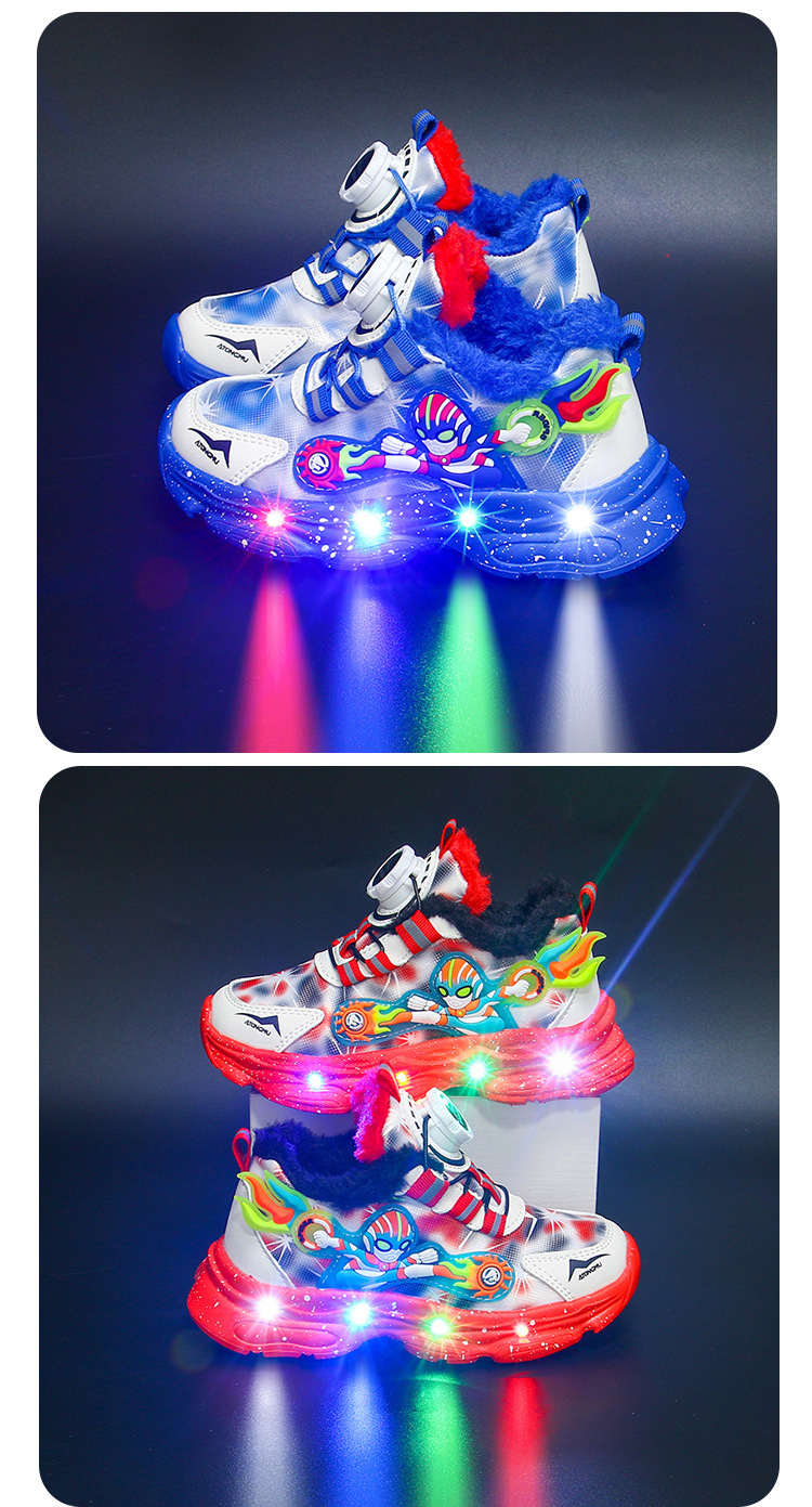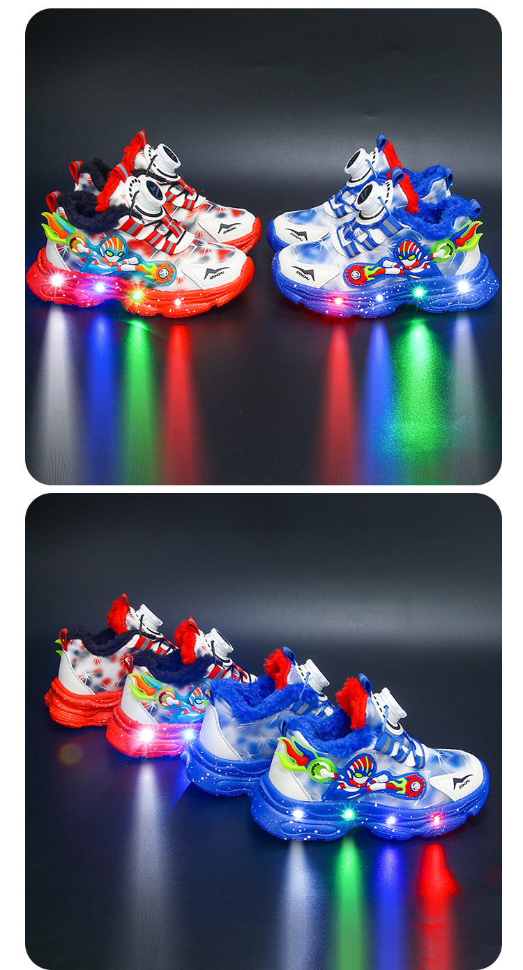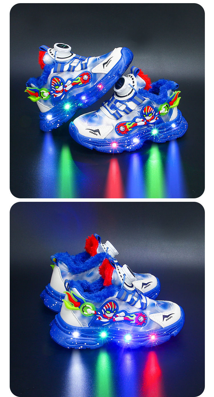 어린이 운동화 조명 2024 가을과 겨울 새 기모 따뜻한 소년 신발 중소 어린이 부드러운 발바닥 올 매치 소년