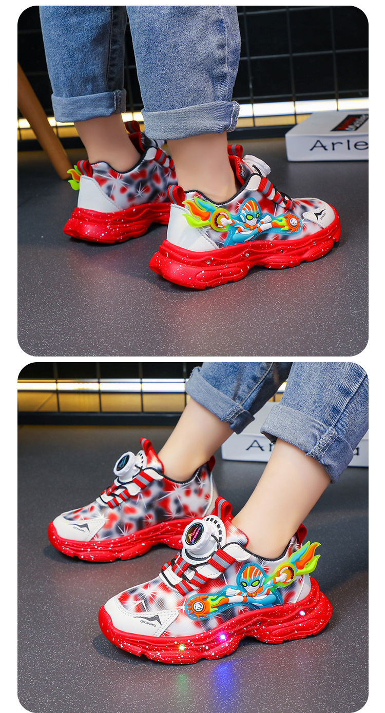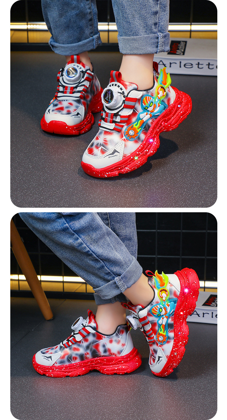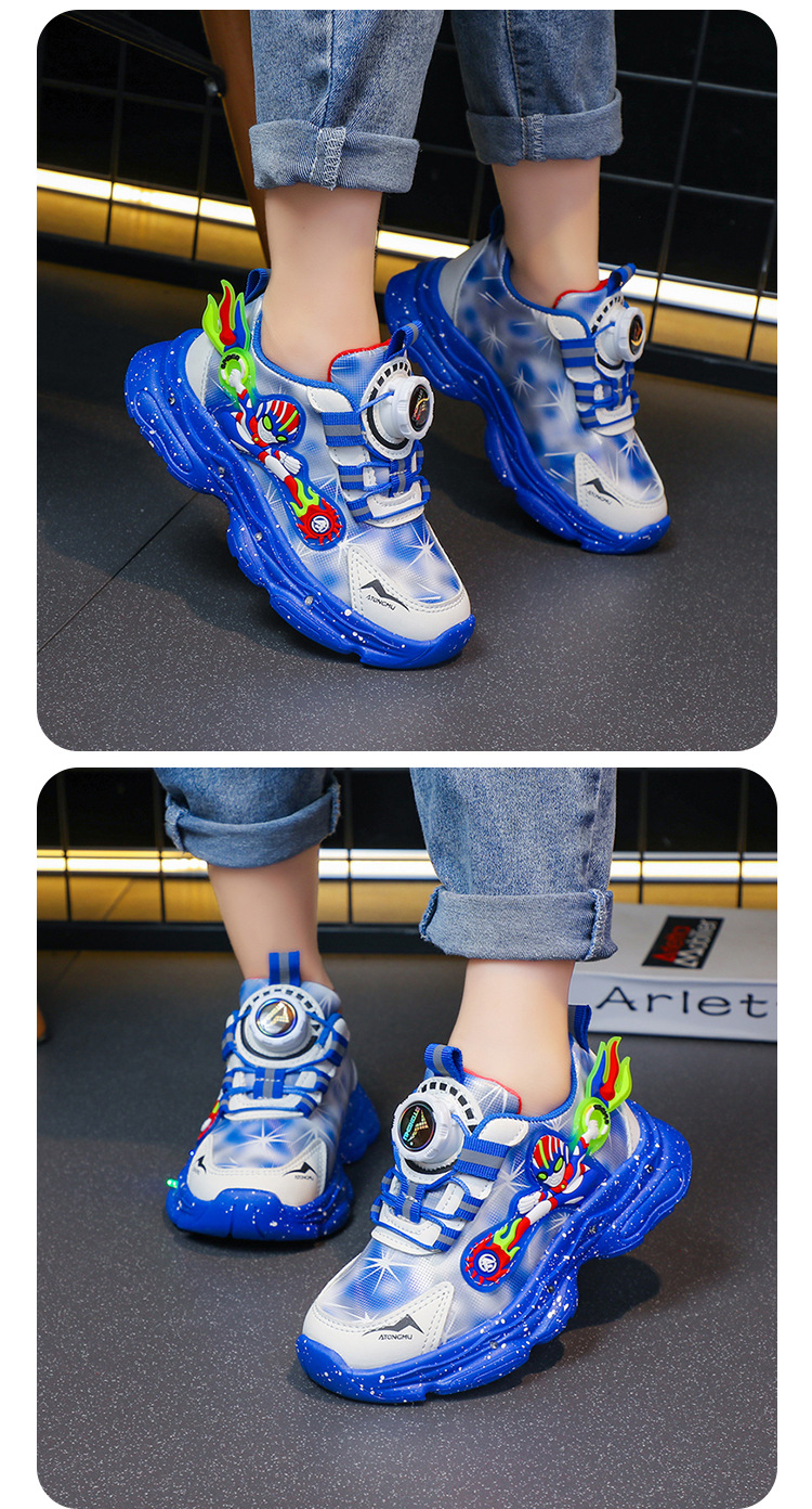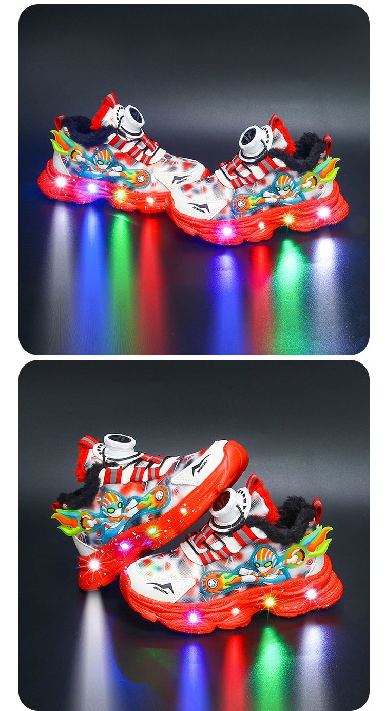어린이 운동화 조명 2024 가을과 겨울 새 기모 따뜻한 소년 신발 중소 어린이 부드러운 발바닥 올 매치 소년
