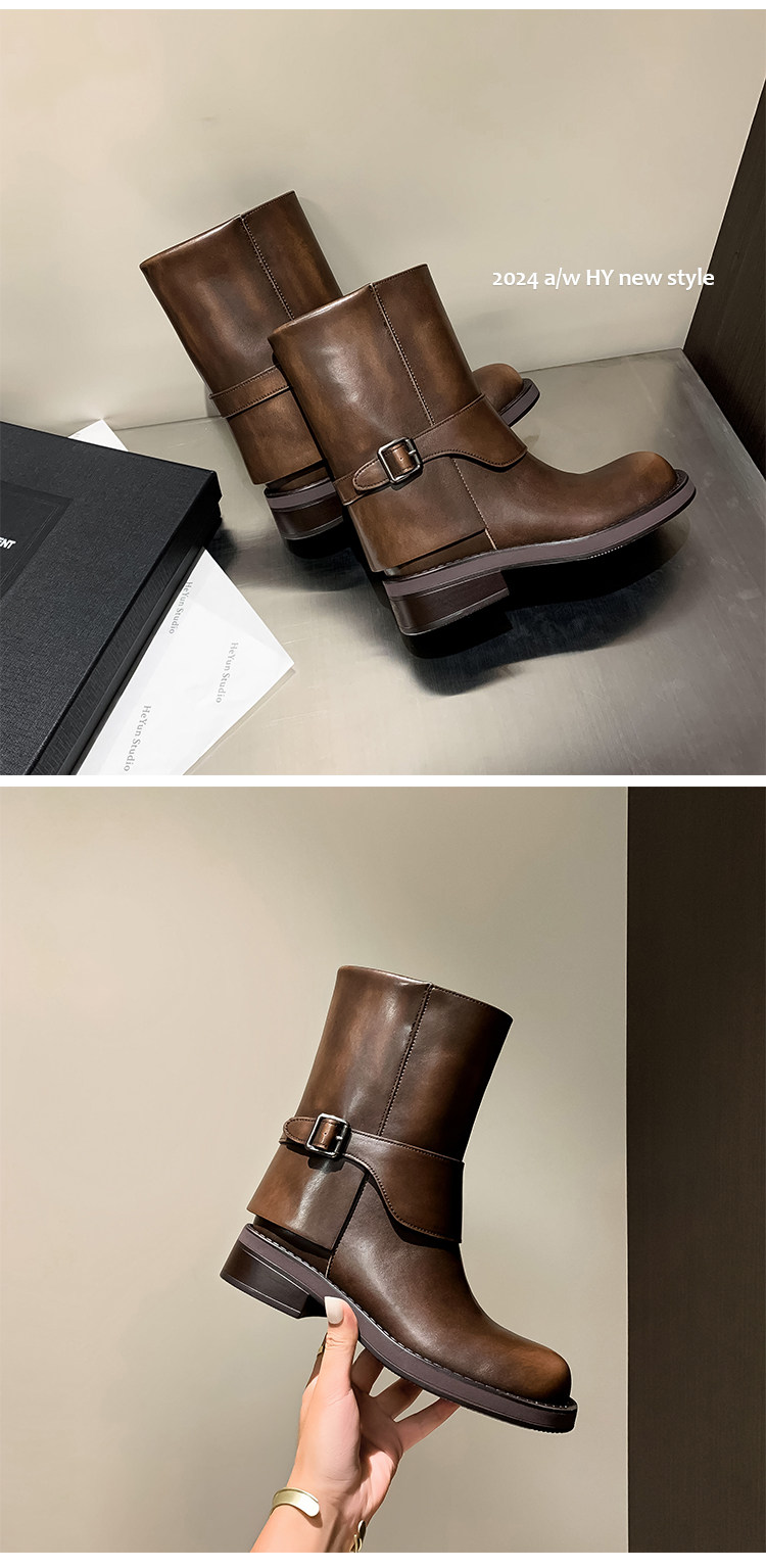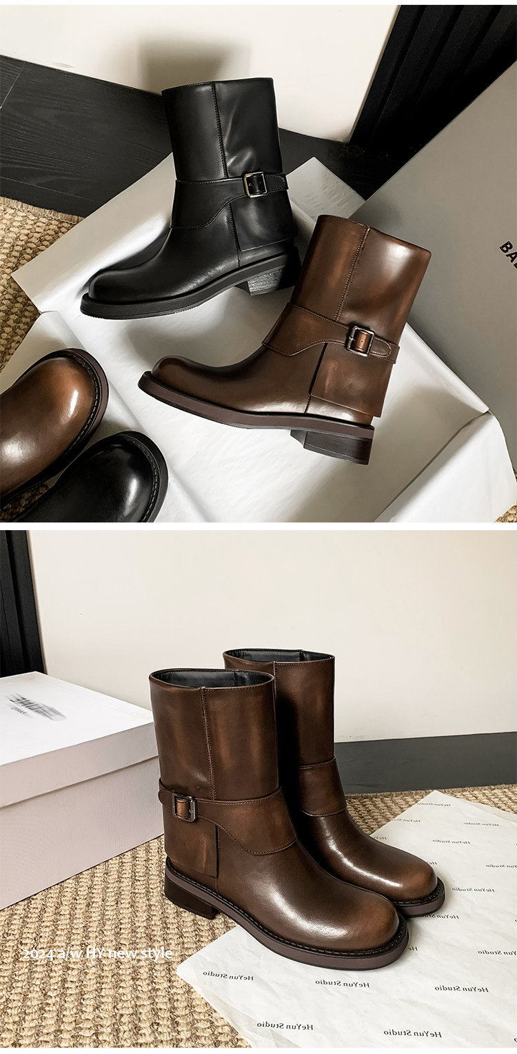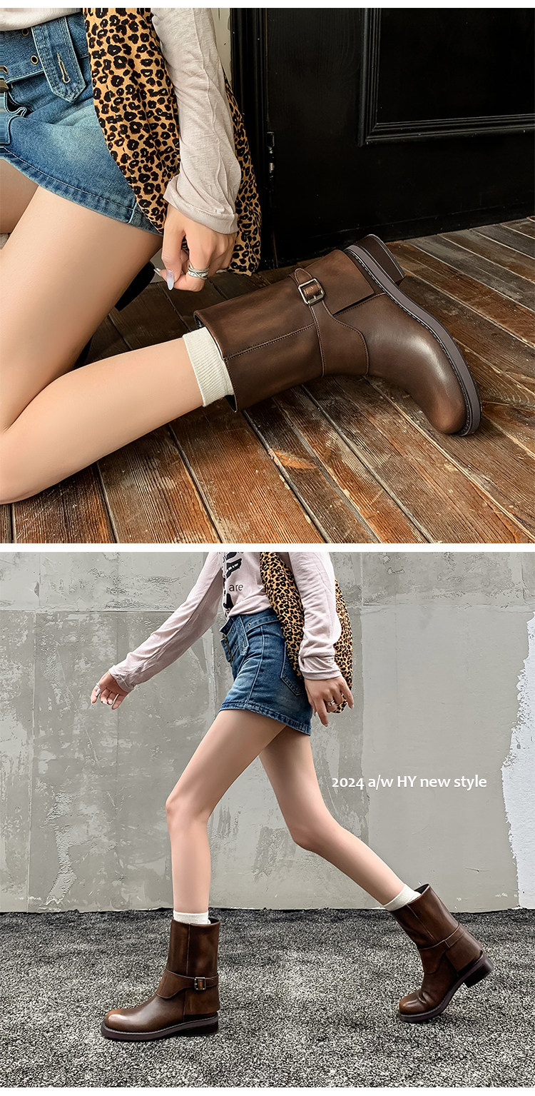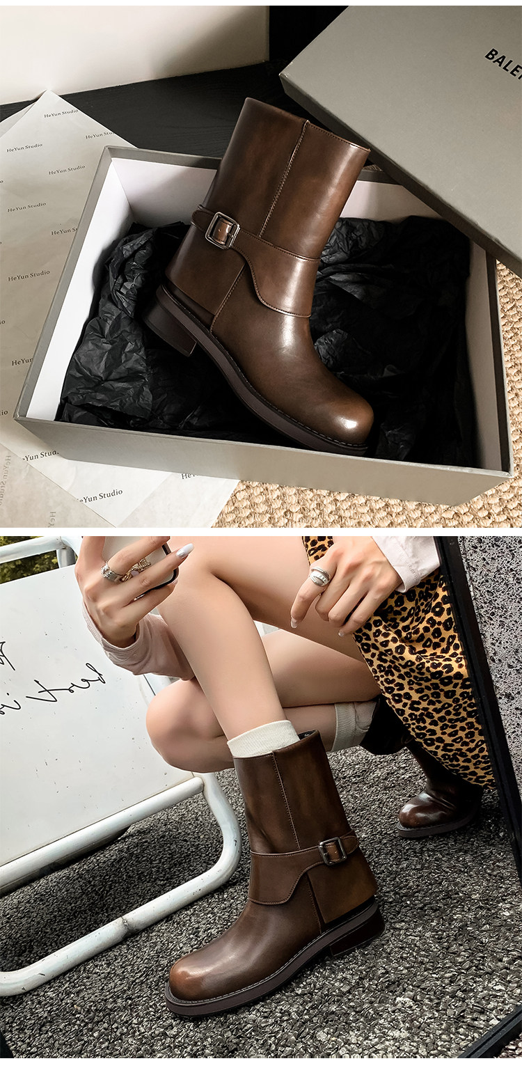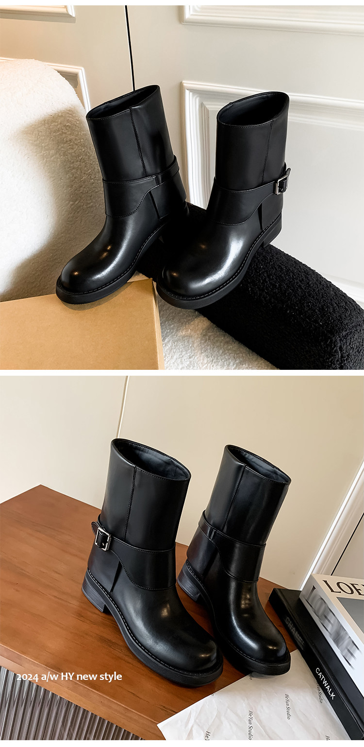 가죽 블랙 벨트 버클 스트레이트 부츠 작은 두꺼운 영국 스타일 마틴 부츠 웨스턴 부츠 짧은 부츠 여성 기사 부츠스토어 가기