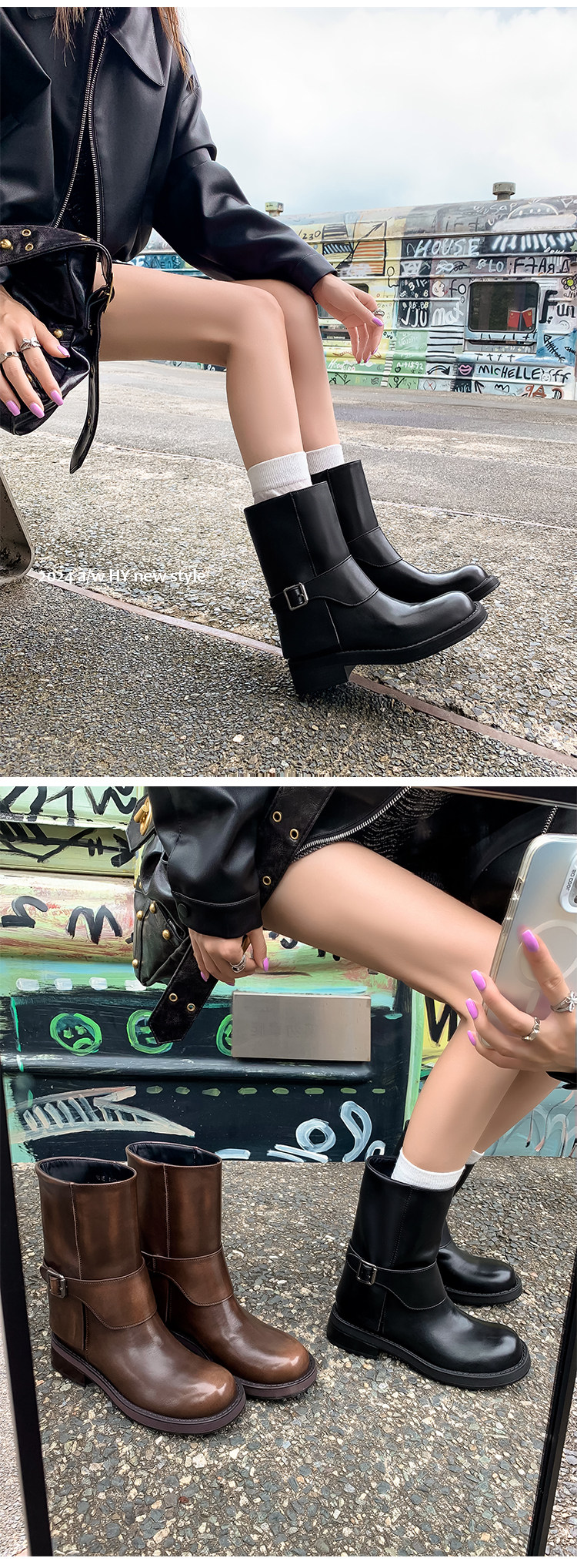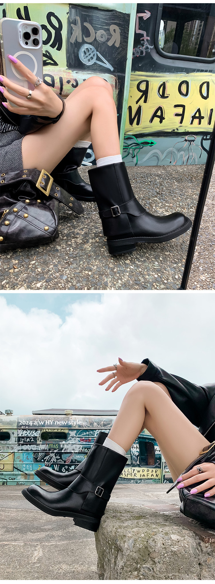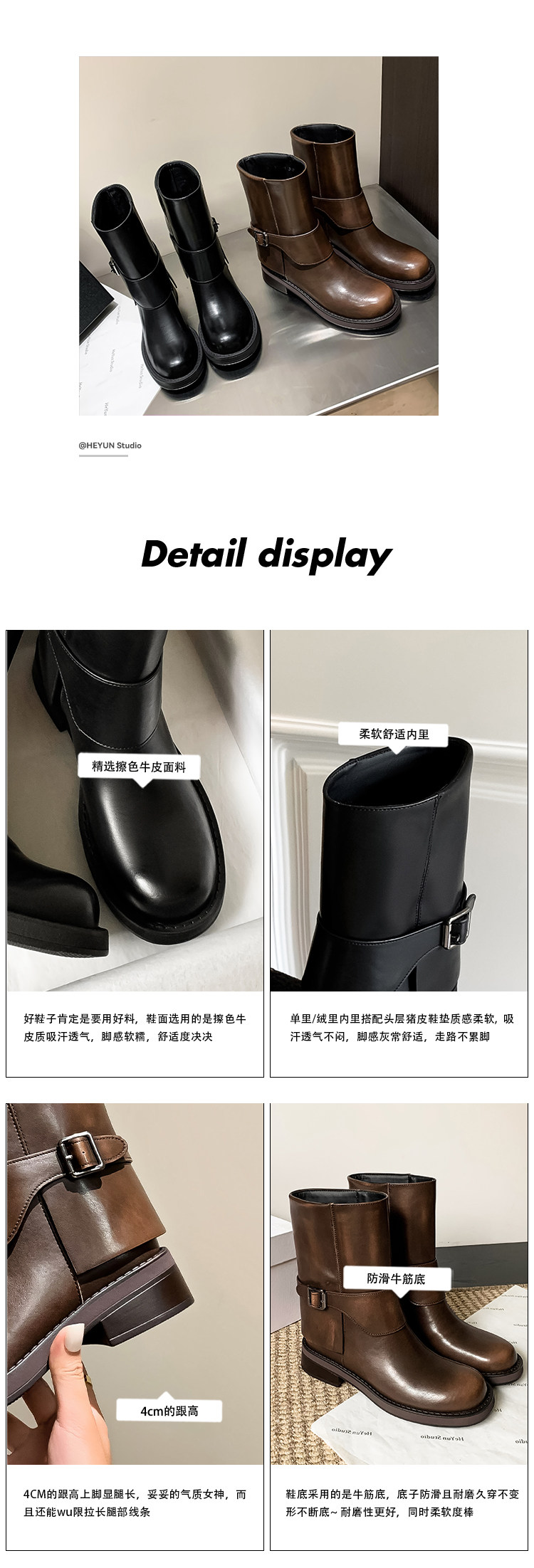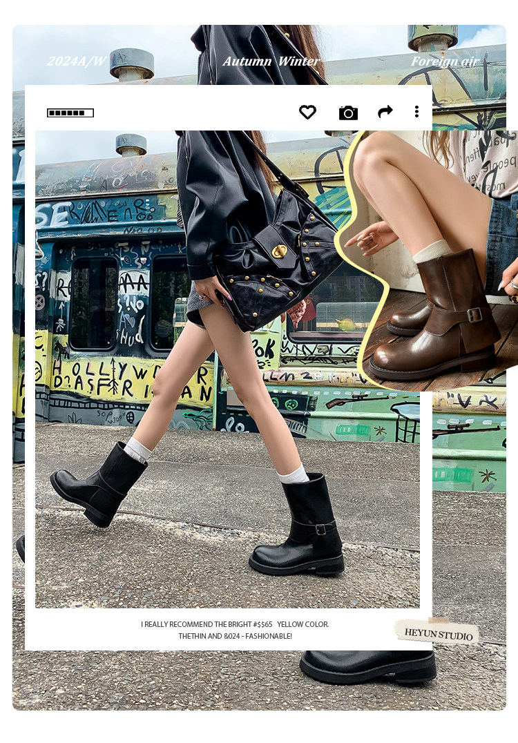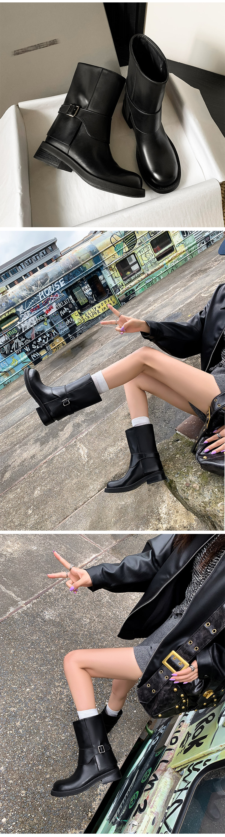 가죽 블랙 벨트 버클 스트레이트 부츠 작은 두꺼운 영국 스타일 마틴 부츠 웨스턴 부츠 짧은 부츠 여성 기사 부츠스토어 가기