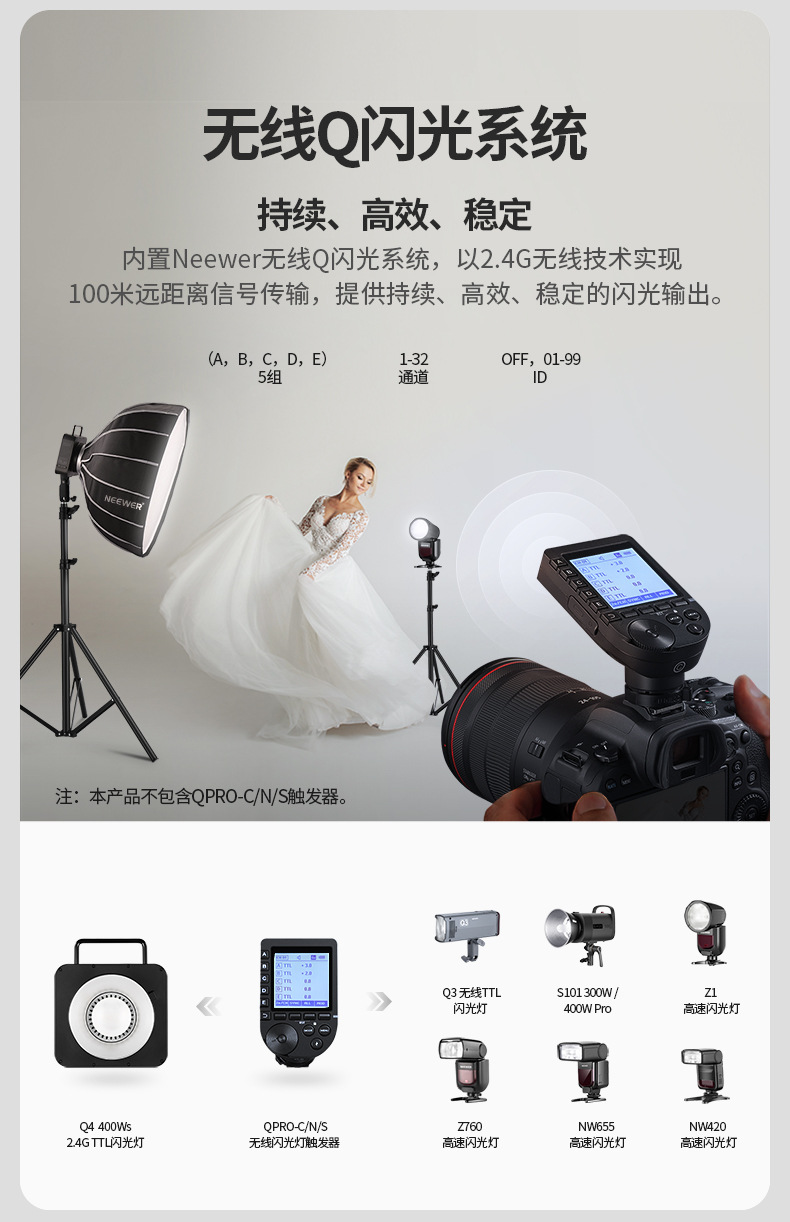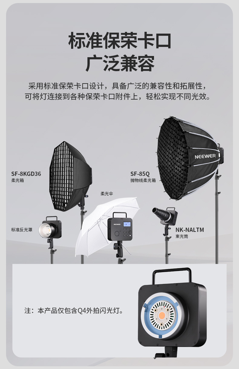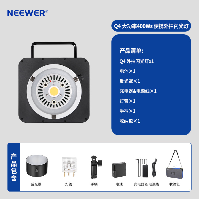 NEEWER/Newer Q 4 400W 플래시 배터리 소형 휴대용 외부 태양 광 램프 1/8000S 고속 동기화스토어 가기