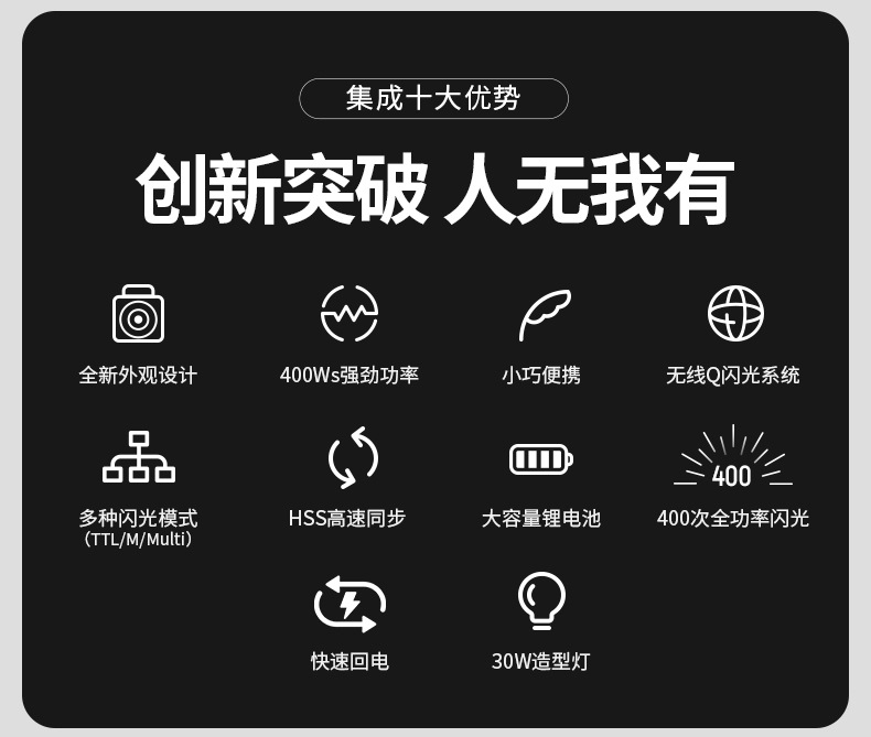 NEEWER/Newer Q 4 400W 플래시 배터리 소형 휴대용 외부 태양 광 램프 1/8000S 고속 동기화