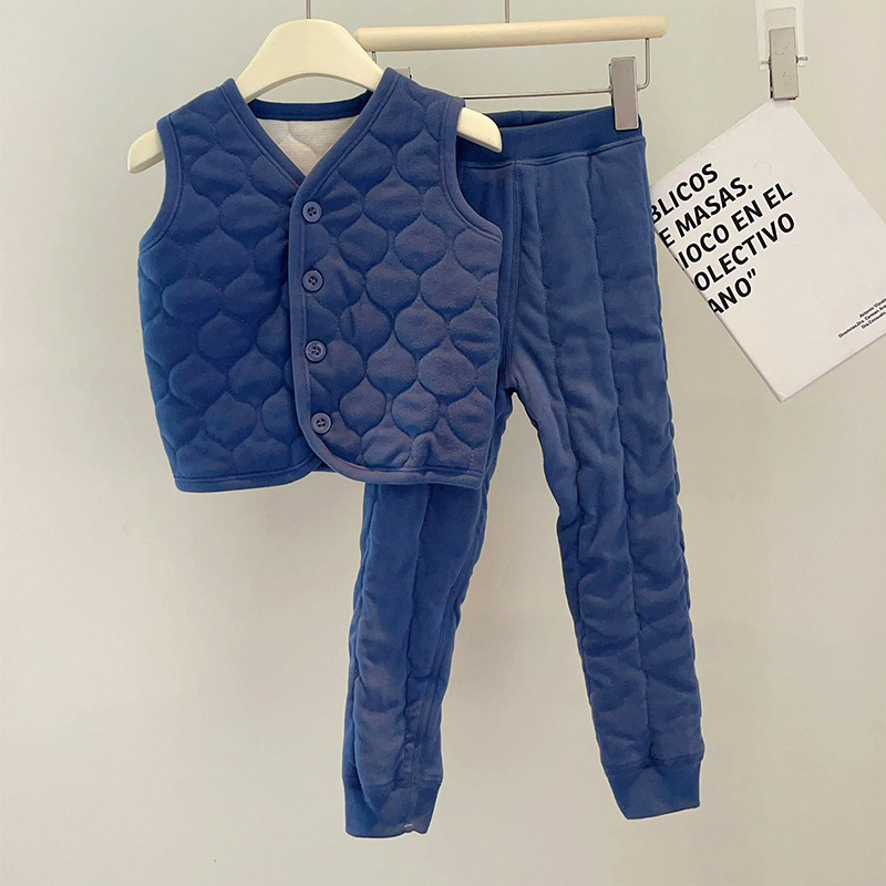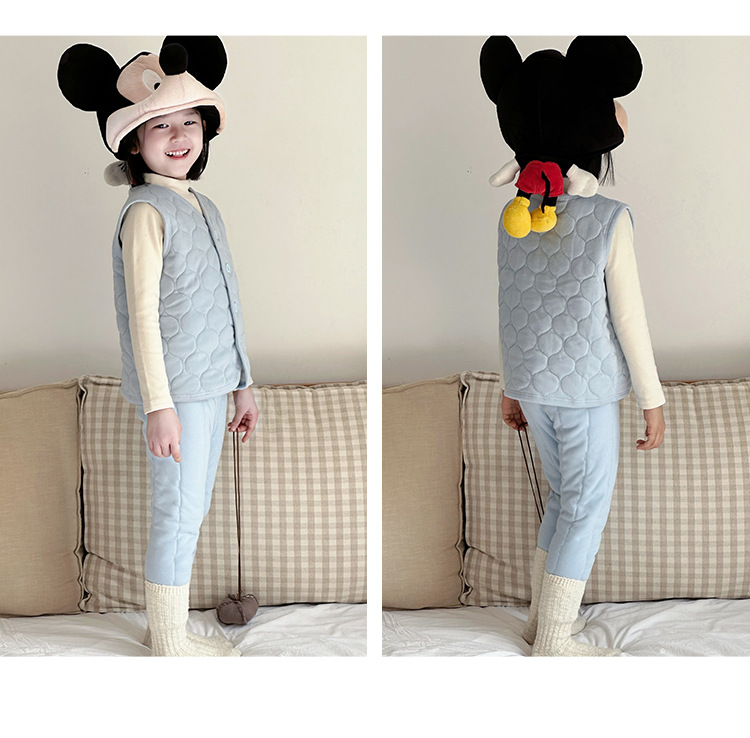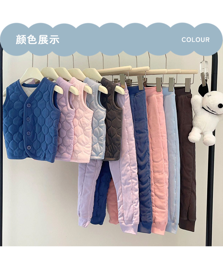 어린 이용 조끼 세트 울 실크 따뜻한 벨벳 소년 소녀를위한 두꺼운 카디건 자켓 아기 따뜻한 바지 가을과 겨울 내복스토어 가기
