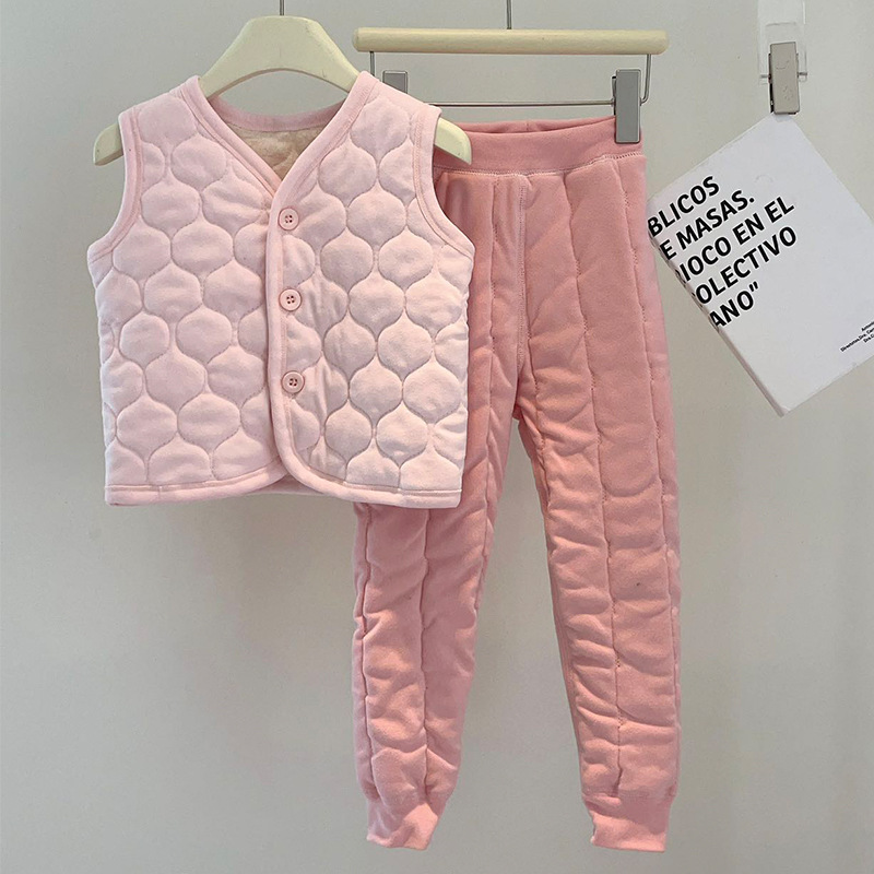 어린 이용 조끼 세트 울 실크 따뜻한 벨벳 소년 소녀를위한 두꺼운 카디건 자켓 아기 따뜻한 바지 가을과 겨울 내복