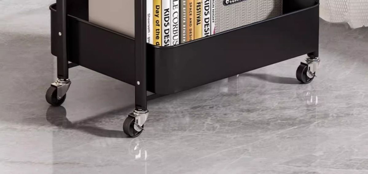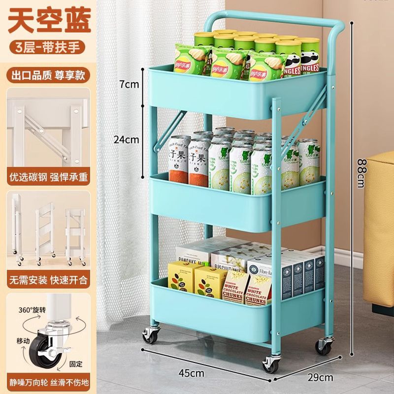 트롤리 스토리지 랙 바닥 다층 가정용 책장 이동식 휠 접는 스낵 장난감 스토리지 랙