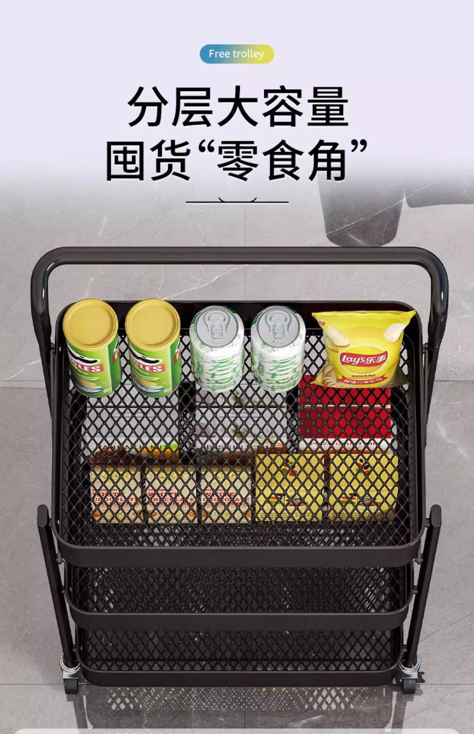 트롤리 스토리지 랙 바닥 다층 가정용 책장 이동식 휠 접는 스낵 장난감 스토리지 랙스토어 가기